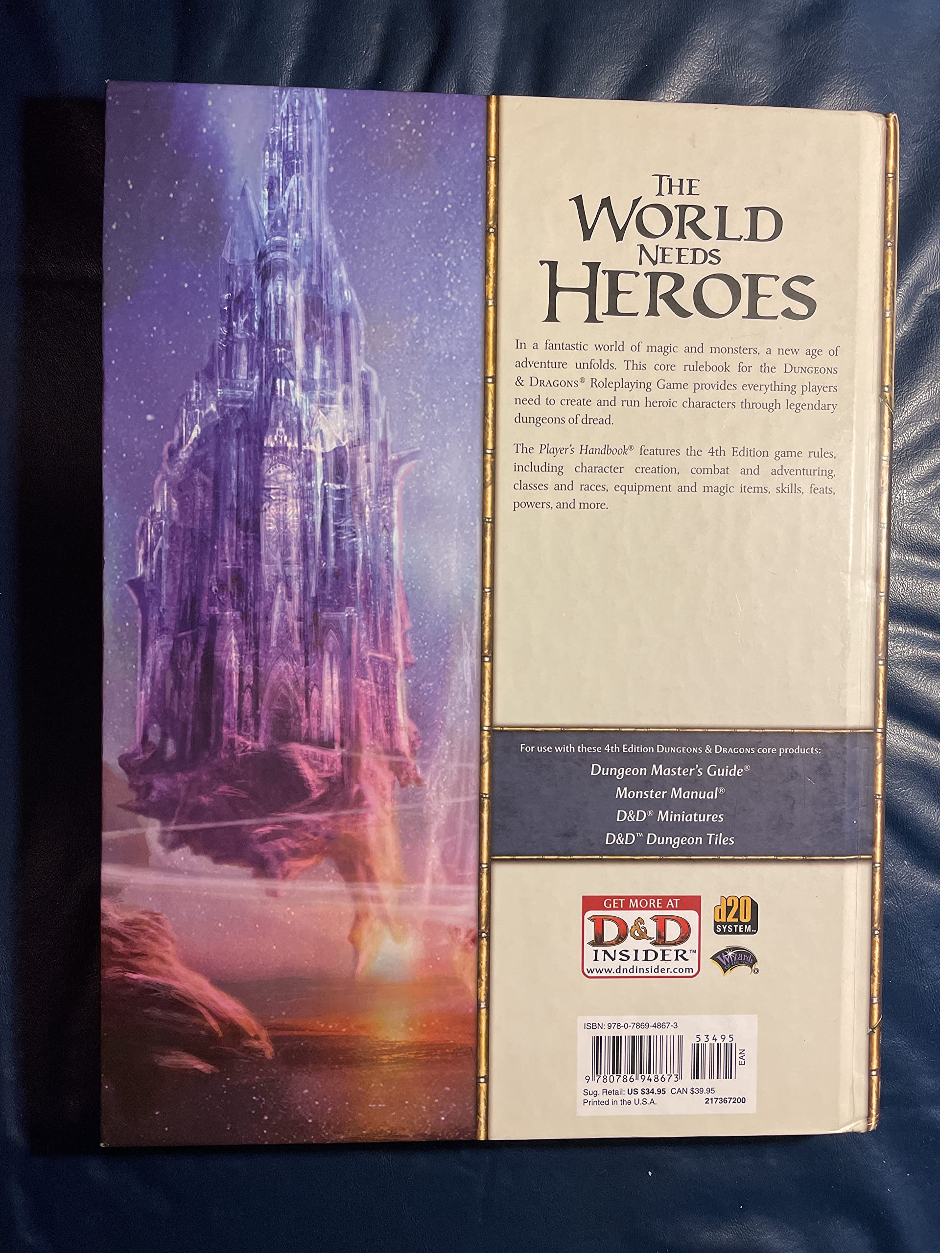 The first of three core rulebooks for the 4th Edition Dungeons & DragonsĀ® Roleplaying Game. TheDungeons & Dragons Roleplaying Game has defined the medieval fantasy genre and the tabletop RPG industry for more than 30 years. In the D&D game, players create characters that band together to explore dungeons, slay monsters, and find treasure. The 4th Edition D&D rules offer the best possible play experience by presenting exciting character options, an elegant and robust rules system, and handy storytelling tools for the Dungeon Master. The Player's Handbook presents the official Dungeons & Dragons Roleplaying Game rules as well as everything a player needs to create D&D characters worthy of song and legend: new character races, base classes, paragon paths, epic destinies, powers, more magic items, weapons, armor, and much more.