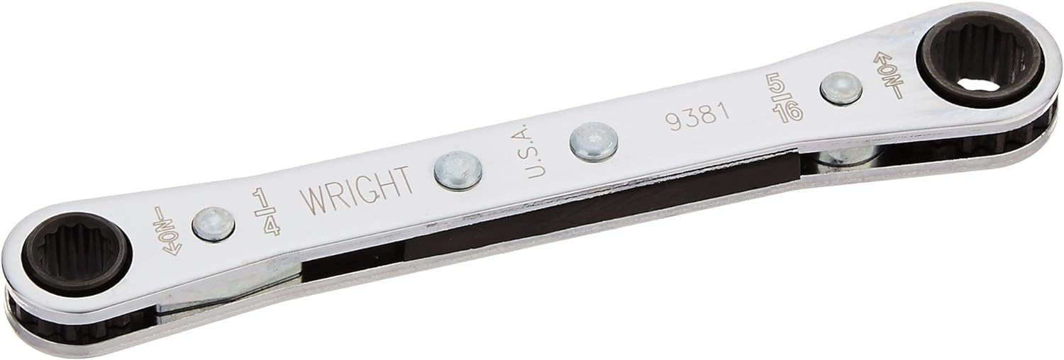 Product Description Wright Tool 9381 Ratchet Double Box End Laminated Wrench 12 Point 1/4 x 5/16 From the Manufacturer Enhance your tool collection with the ratcheting box wrench, 12 point. 1/4 x 5/16-Inch size. Wright wrenches feel as good as they look. They have a reserve of strength for tough jobs. They feature the patented Wright Drive and Wright Grip, which provides more torque with less fastener damage, distributing stress evenly over a larger contact area and away from the fastener corners.