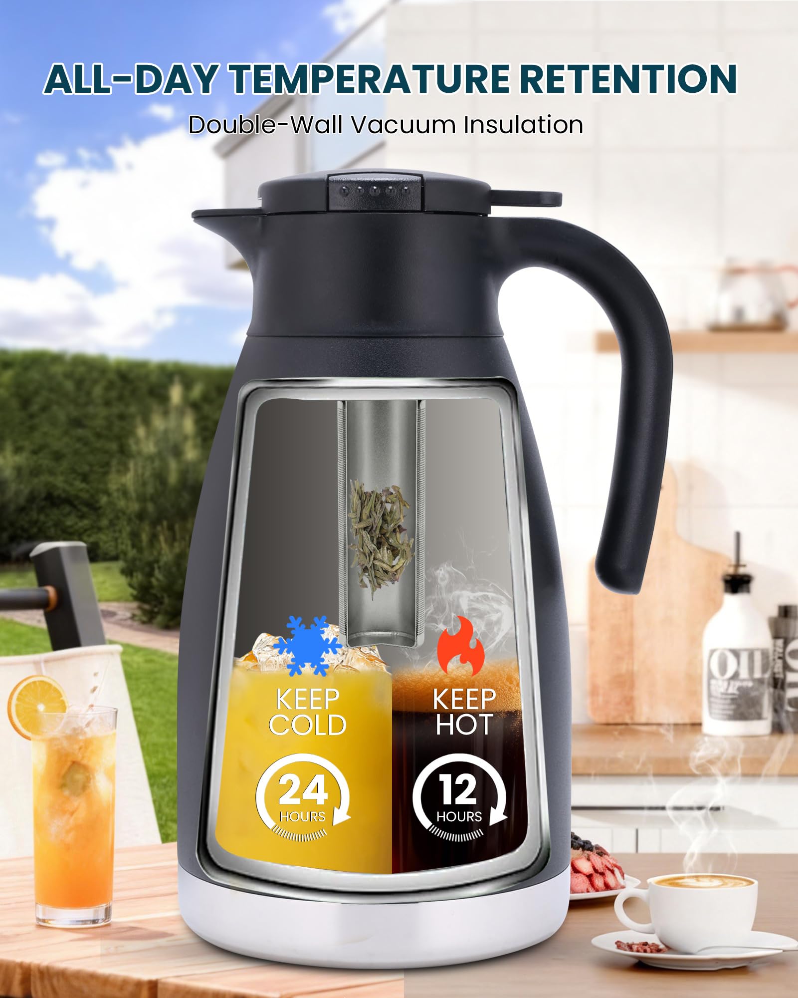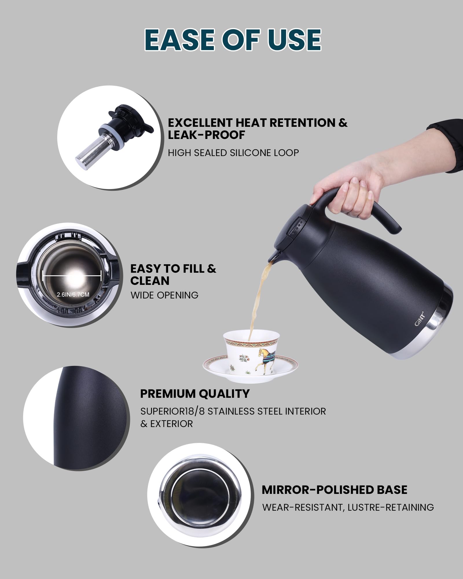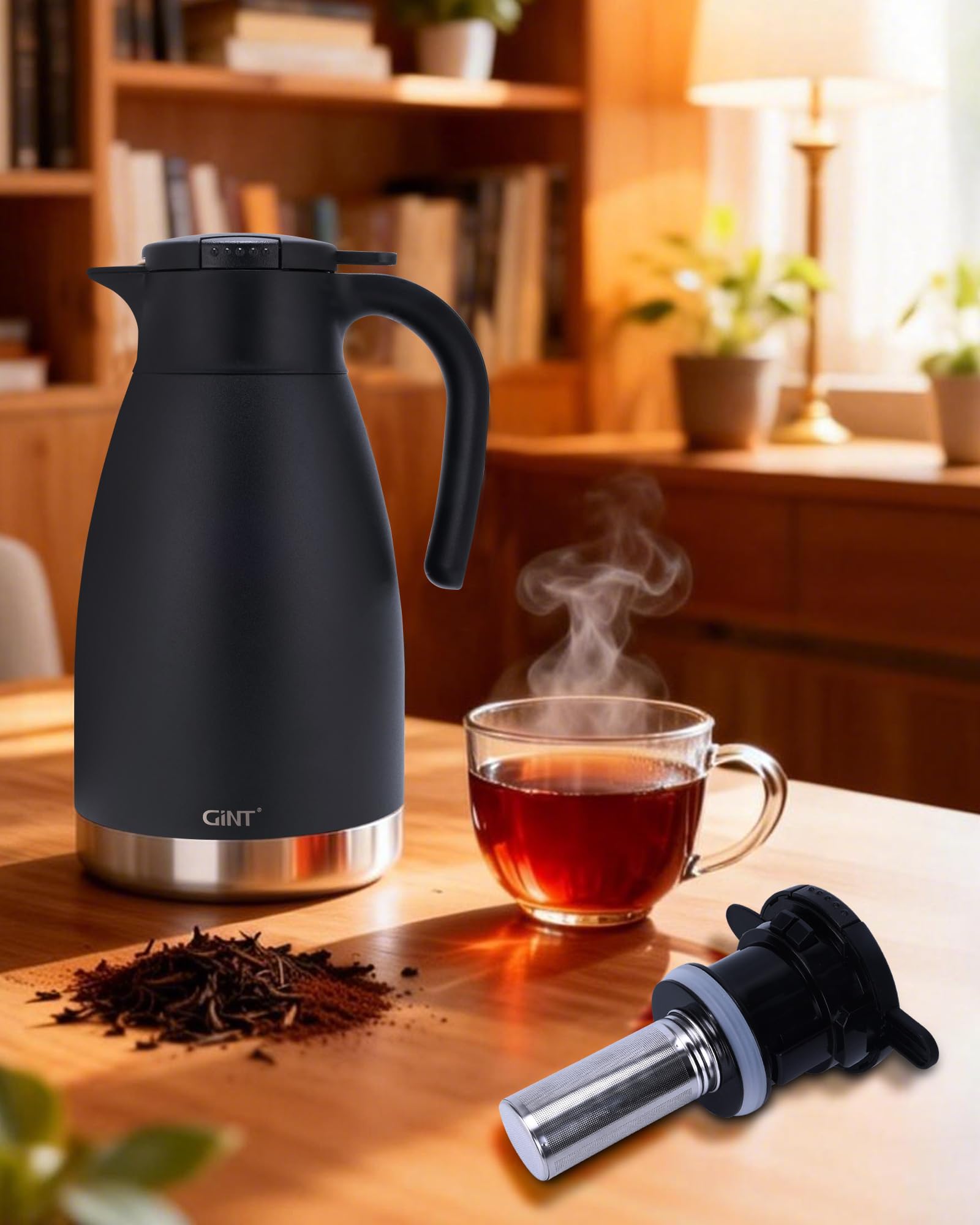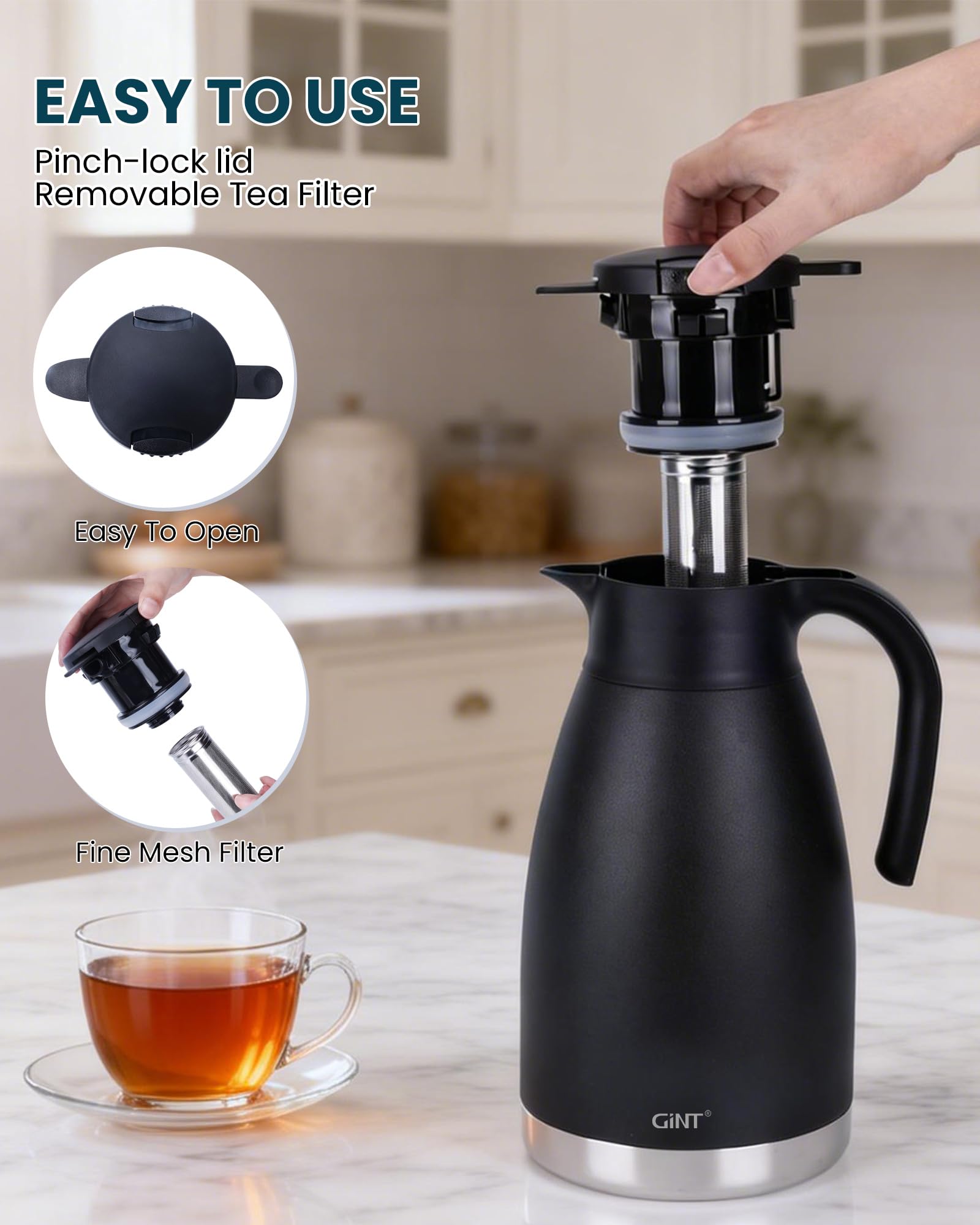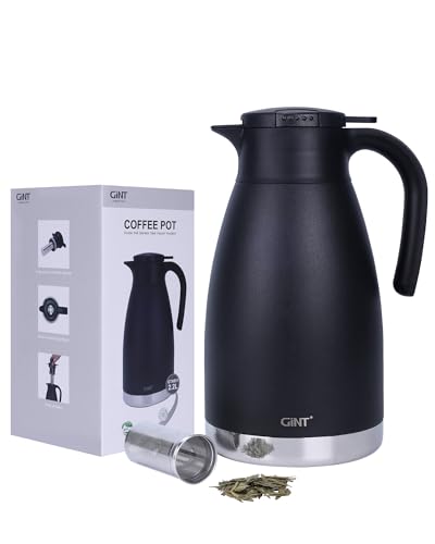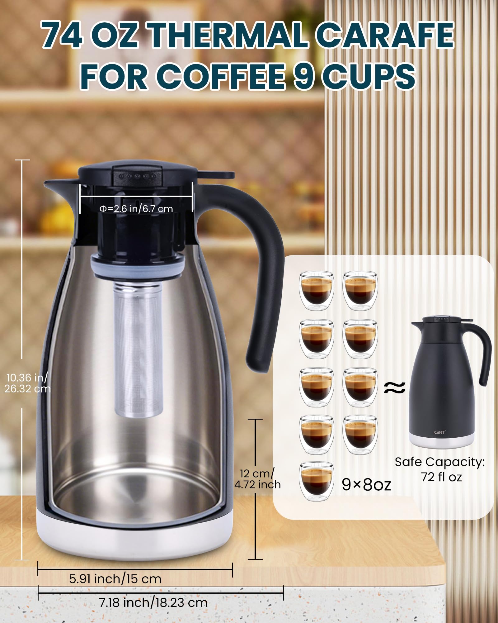 ✅ Large-Capacity Tea Carafe with Infuser – This 74oz (2.2L) thermal coffee carafe with infuser also serves as an insulated tea carafe, storing 10+ cups; dimensions 11.6"×6.5", weight 2.4 lbs, designed for offices, events, and all-day beverage service. GiNT makes high-volume refreshment effortless.