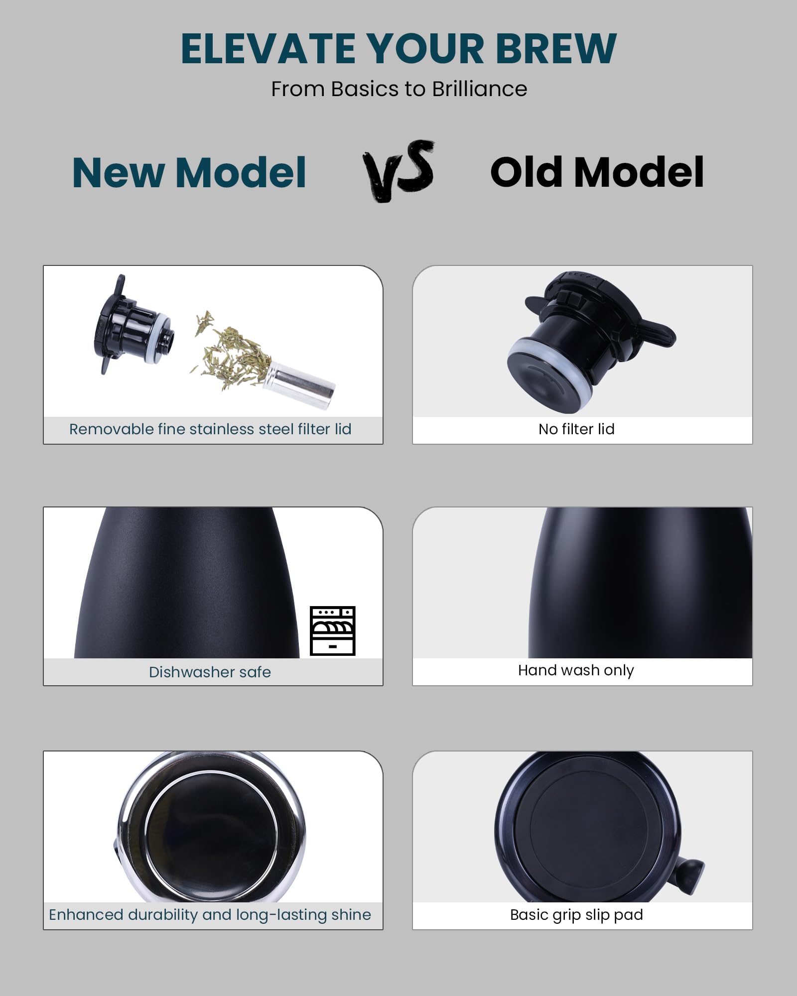 🍵 Detachable Filter for On-the-Go Tea Brewing – Features a removable/detachable filter, making it a convenient tea infuser carafe and insulated teapot; easily removed for thorough cleaning, no tea residue—ideal for repeated use in busy environments. Dishwasher-safe components simplify post-use care.