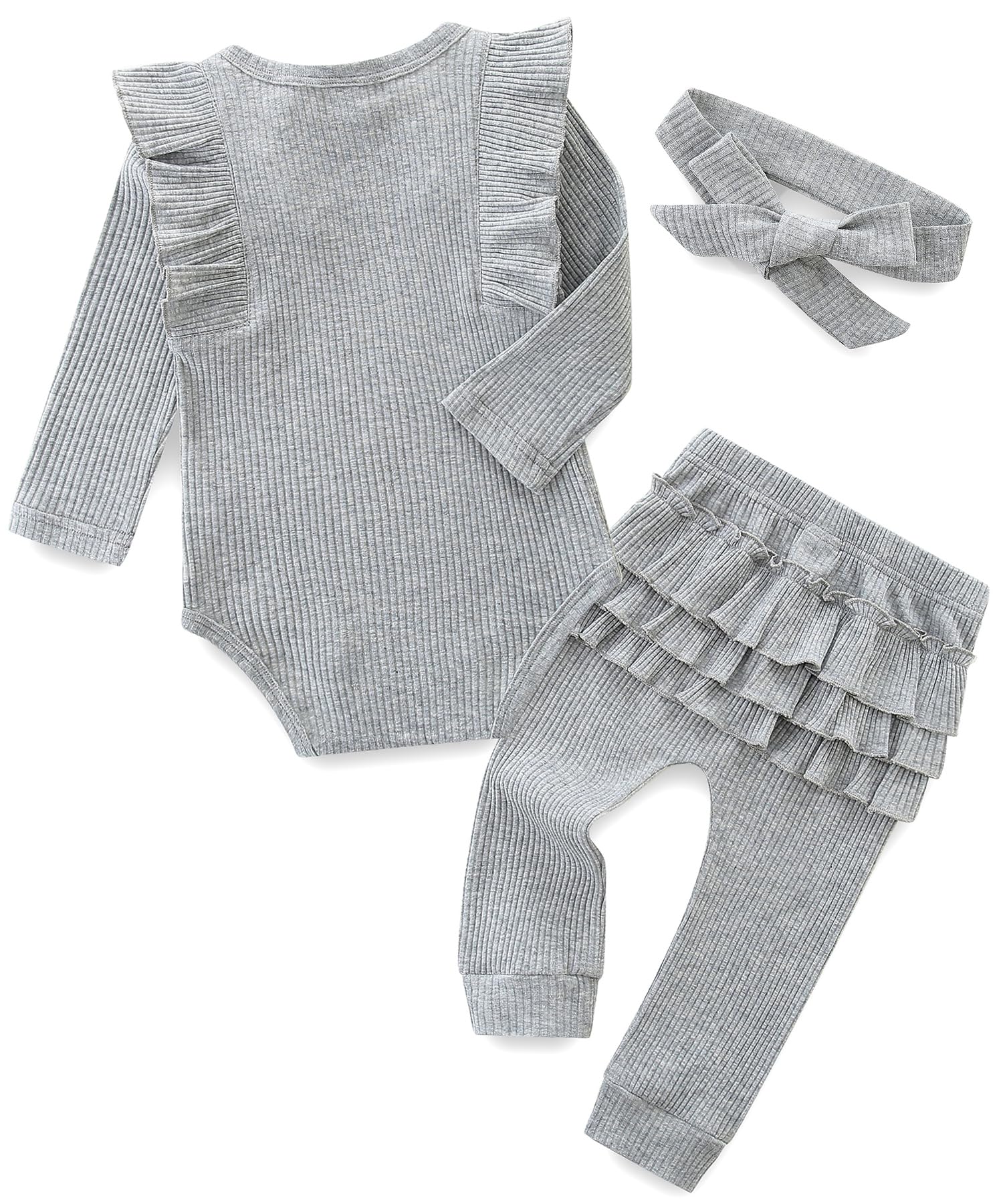 Baby girl outfits includes long sleeve romper,pant,headband.