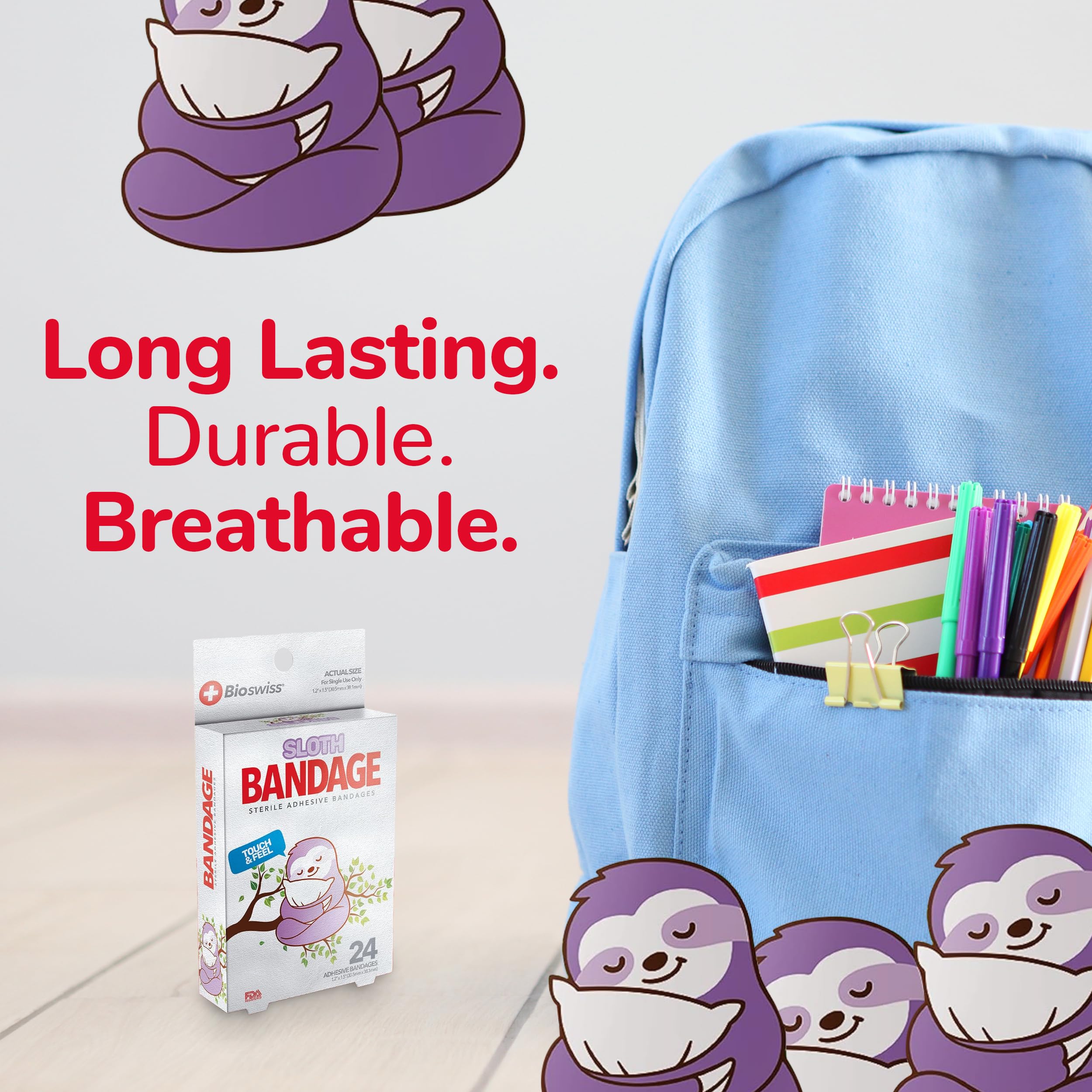 24 SLOTH BANDAGES: Sloth-shaped adhesive bandages pack helps protect cuts, scrapes, and minor wounds while making healing less stressful