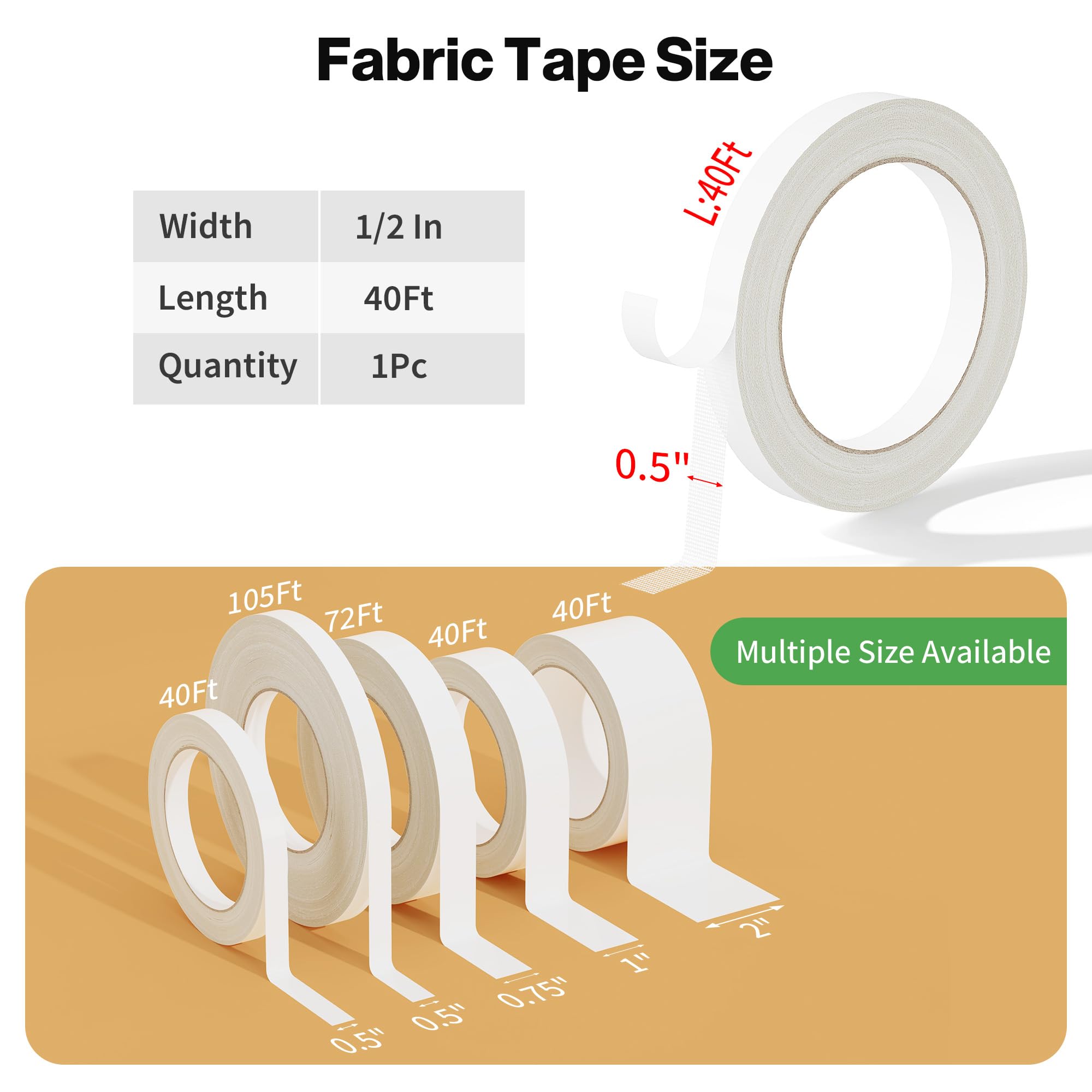 SIZE AND PACKAGE: 1 roll 1/2 In x 40 Ft (1.2cm x 12m) of double sided carpet tape — ample length to hem multiple garments, craft fabric art, or patch decor instantly. No sewing needed for flawless finishes.