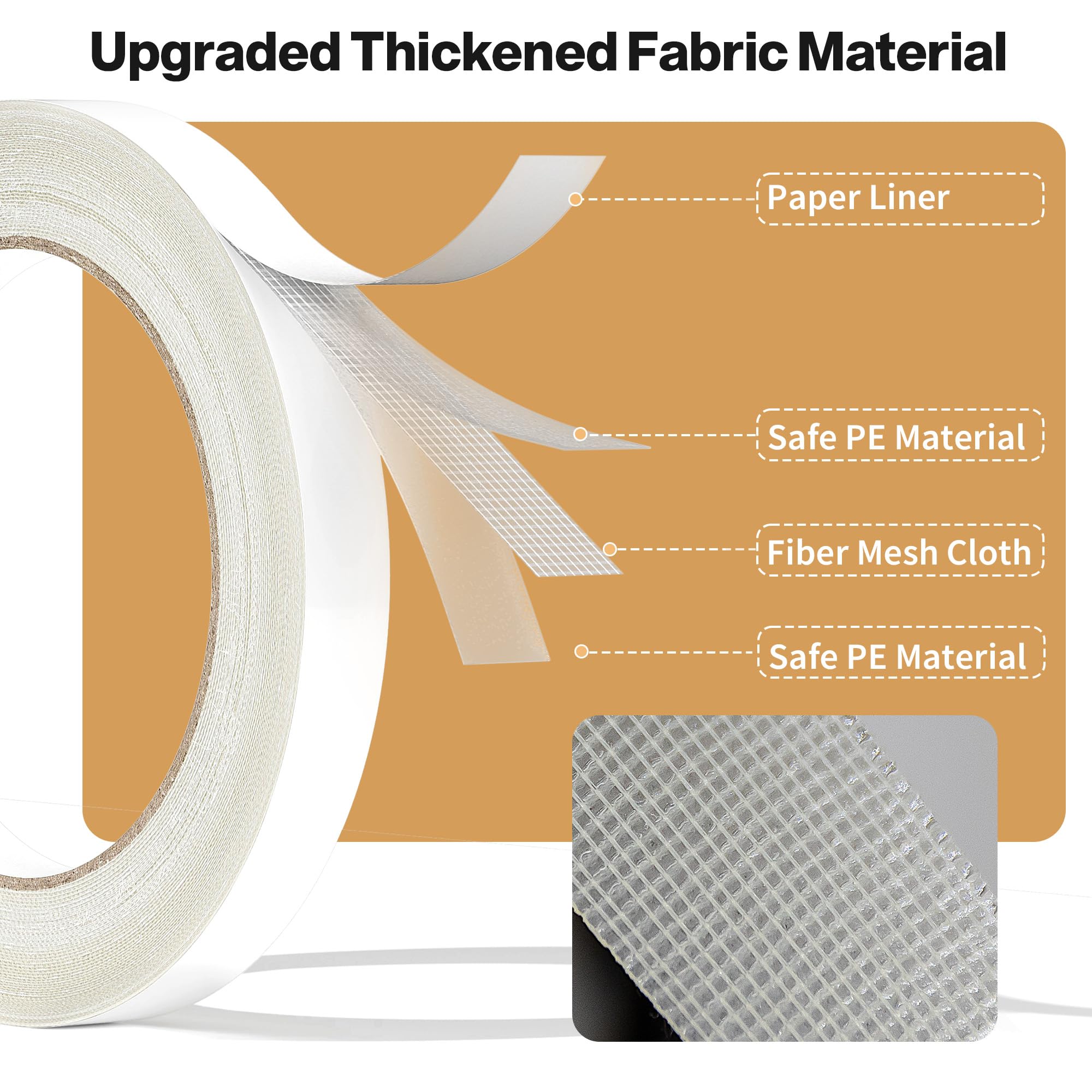 STRONG & RESIDUE-FREE: Hoacm double sided fabric tape features a PE fabric mesh core for durability, coated with an ultra-strong adhesive. The strong adhesive double sided tape holds powerfully yet removes cleanly without damaging surfaces.