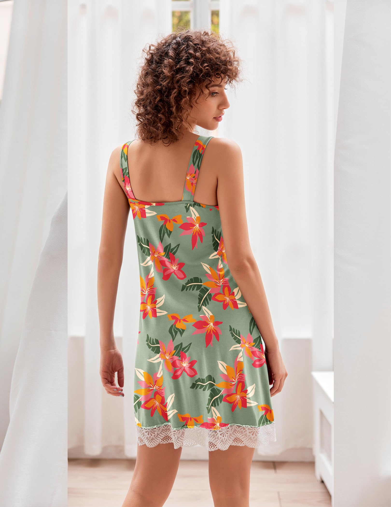 V-neck and floral lace design helps show your beautiful lines, many colors and cute prints available for designing, suitable for summer nights, as nightgowns, chemise, lingerie for women,sleepshirt,pj dress.