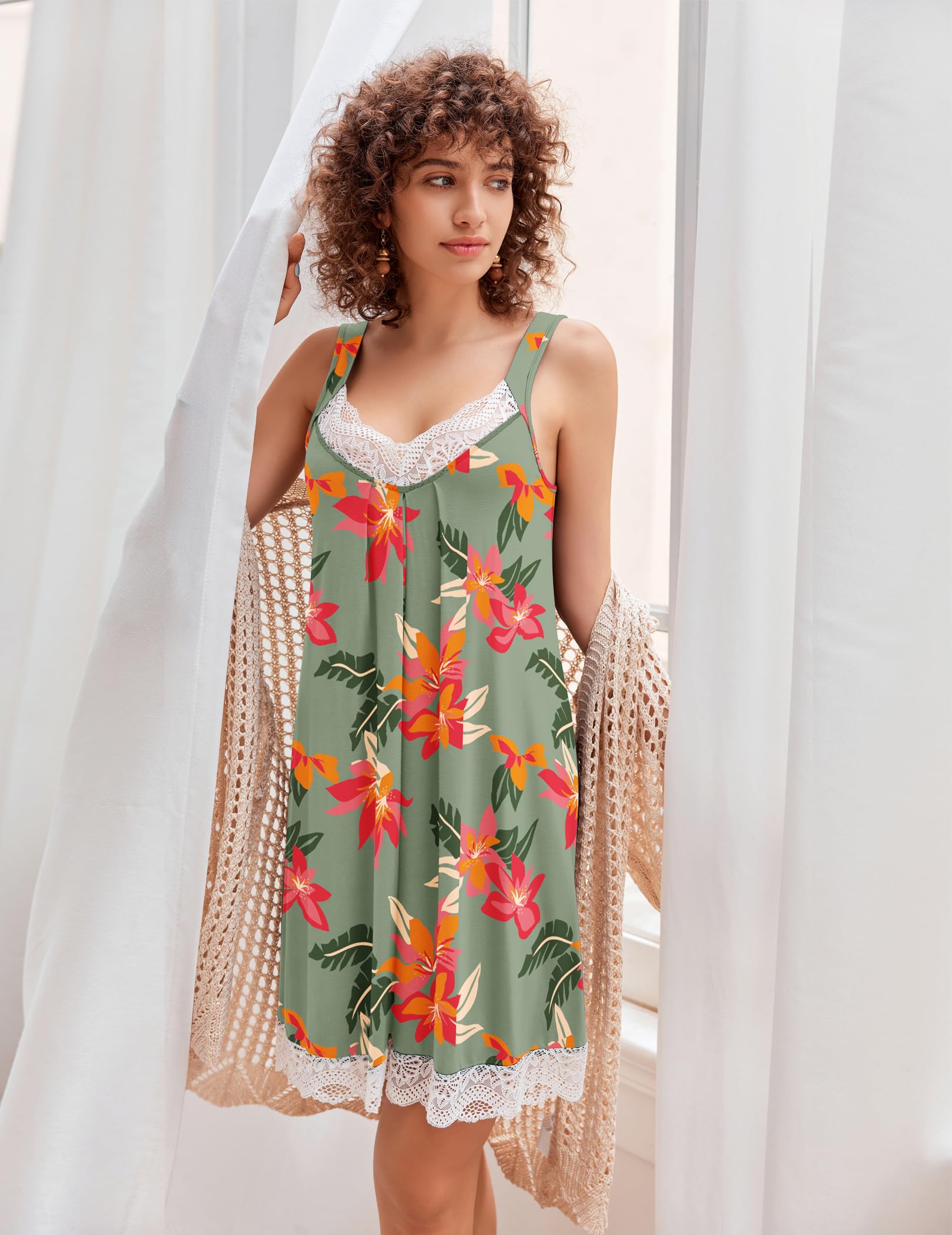 2 Pack Womens Nightgown:Made of 95%Polyester5%Spandex,high-quality lace and soft material, it's smooth, stretchy and lightweight very comfortable to wear for night,suit for use as nightgowns for women,night gowns for adult women.
