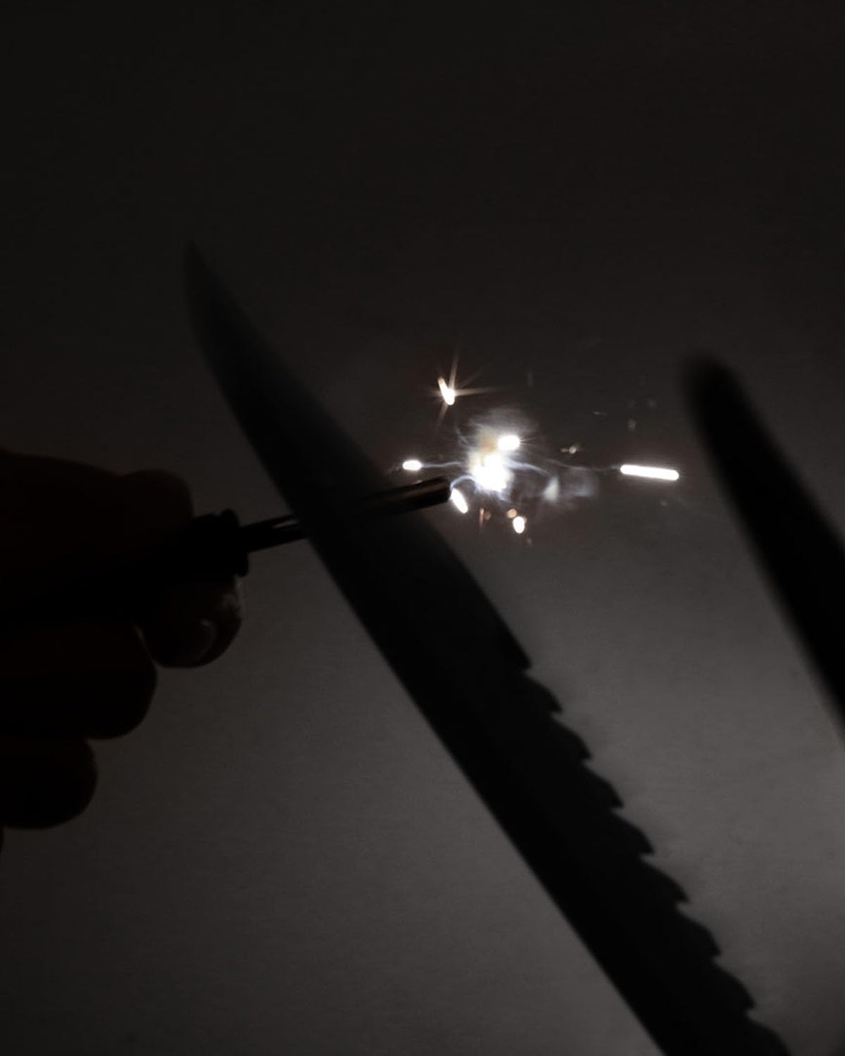 Sharpener & Fire Starter: Packed below the plastic container in the paper box, please check carefully. Fire starter (black) and a sharpener (sliver) is suitable for outdoors camping