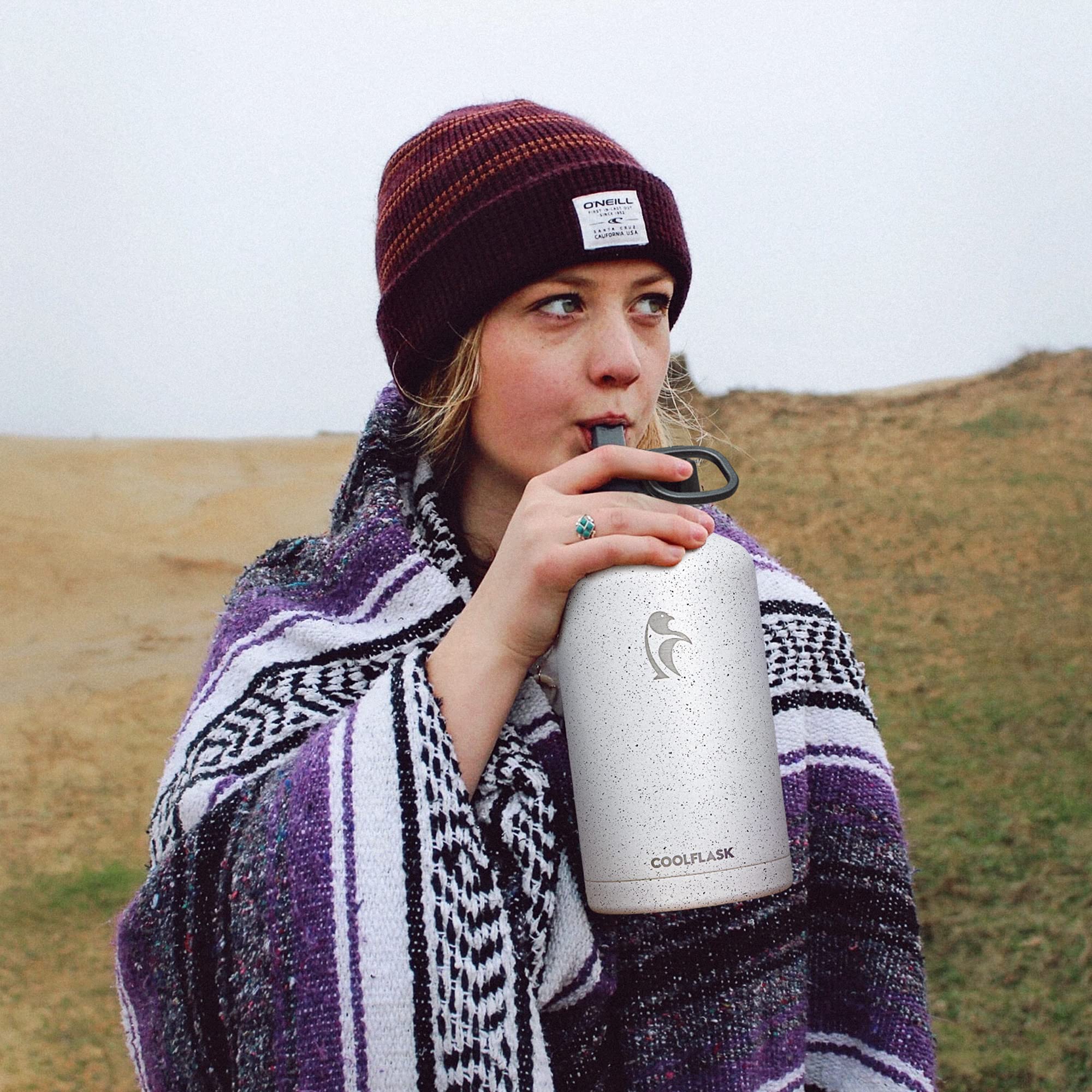 【Grand as the Galaxy】This 64 oz insulated water bottle has a unique matte finish, gradient powder coat, ice speckles and laser engraved logo that's sensory on the look and touch. It won't sweat or slip from wet palms, the large 64 oz capacity will keep you hydrated for a whole day without a refill.
