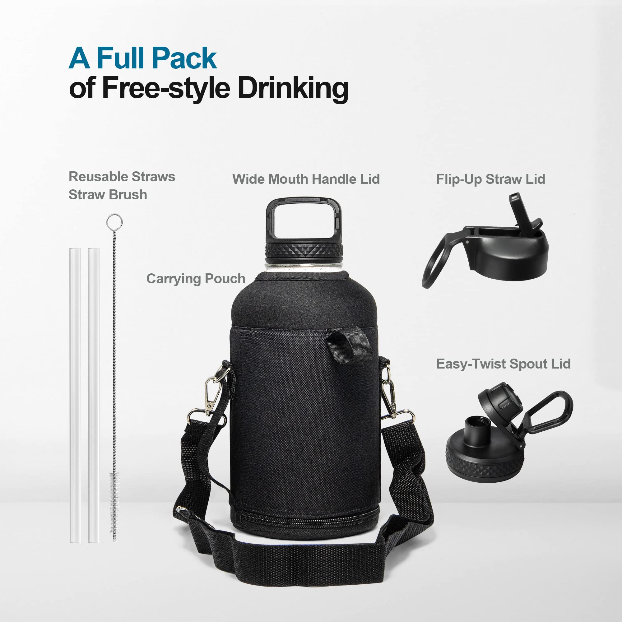 【Functional 3-Lid Pack】By using the insulated flask, you can say goodbye to scalds or spills. Gulp in large mouthfuls without spills from the easy-twist spout lid, sip hands-free from the flip-up straw lid, and refill water and add ice through the wide mouth handle lid. Water drinking has never been so fun, easy, and stylish.