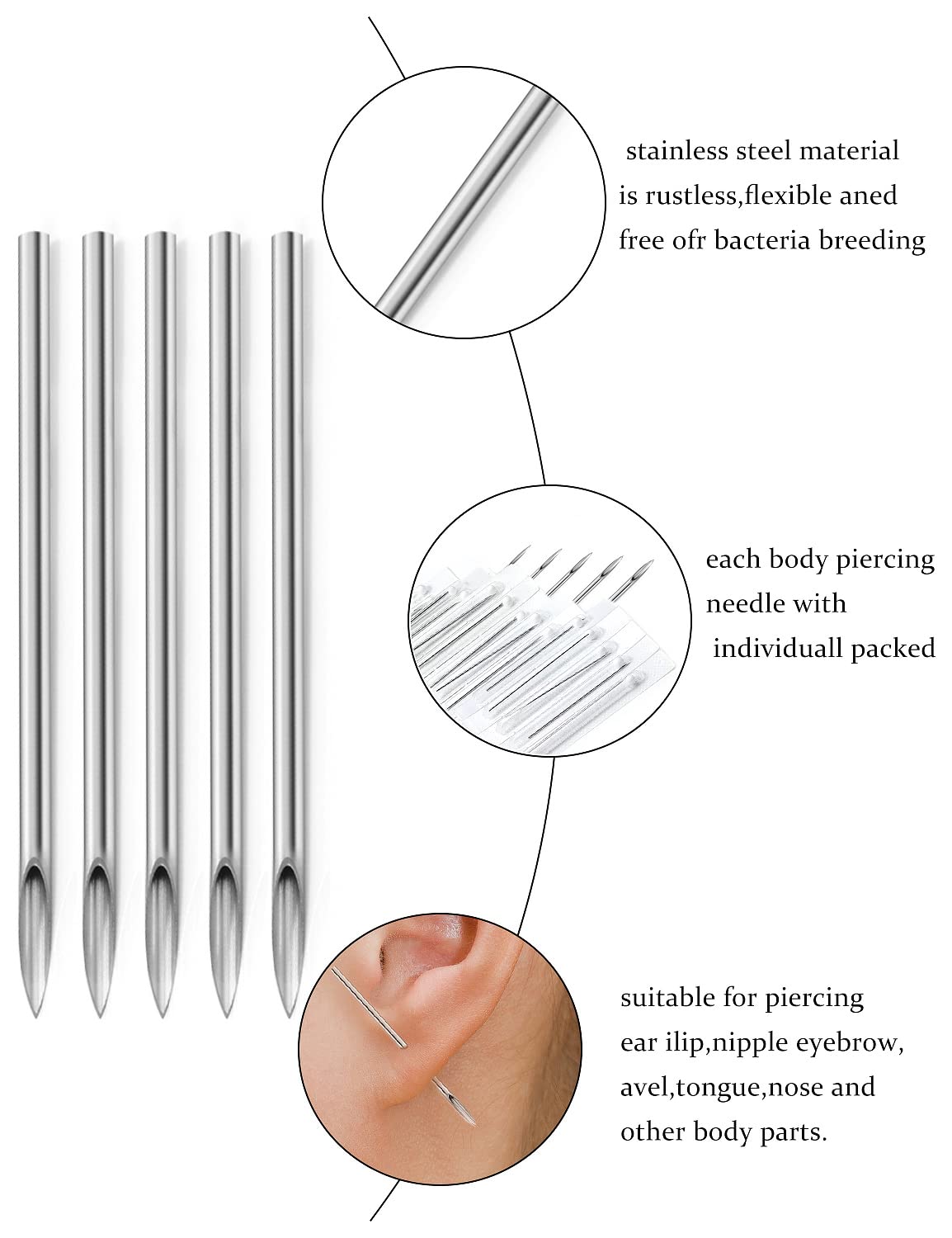 [SUITABLE FOR USE]: These Piercing Needles Can Be Used For Belly Button Rings, Tongue Rings, Septum Rings, Nose Rings Piercing, Lip Rings, Eyebrow Rings, Ear Piercing, Cartilage Tragus Helix Rook Conch Daith Earrings Piercing Jewelry