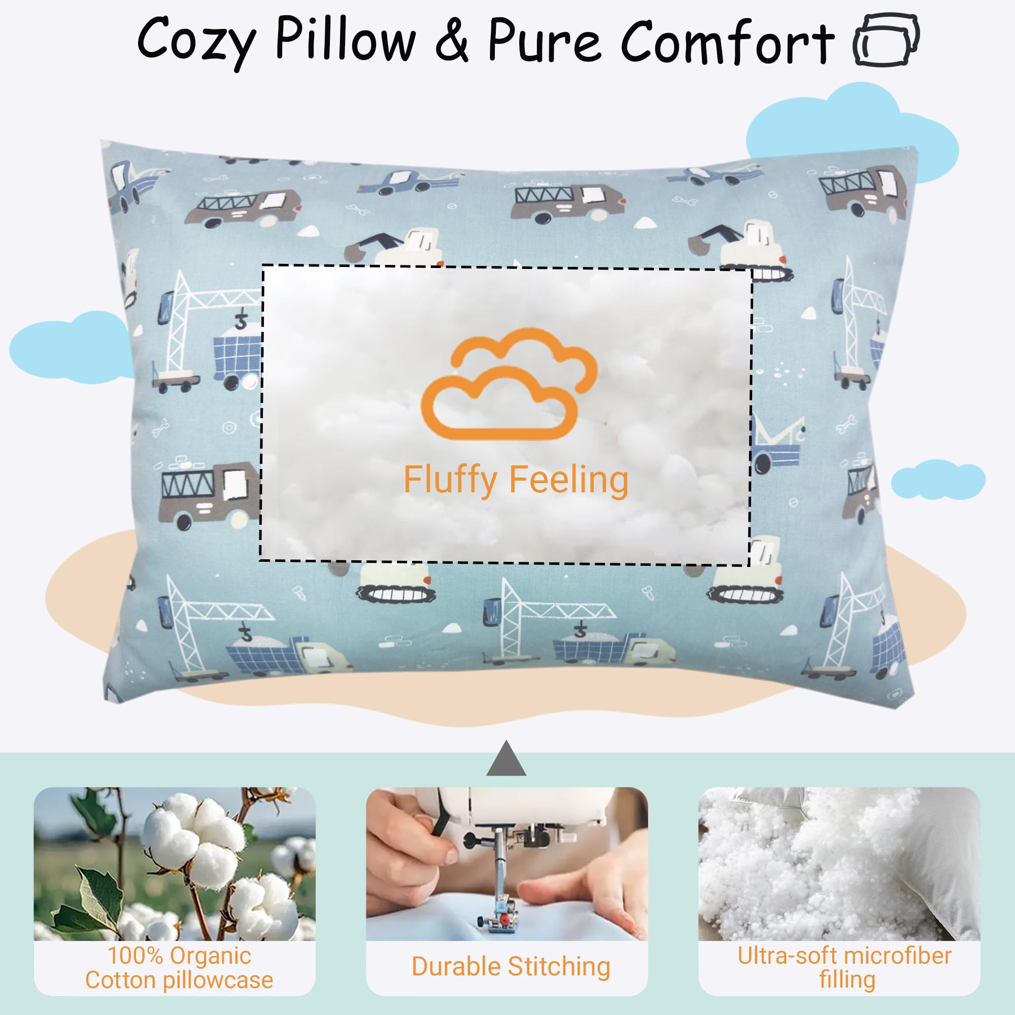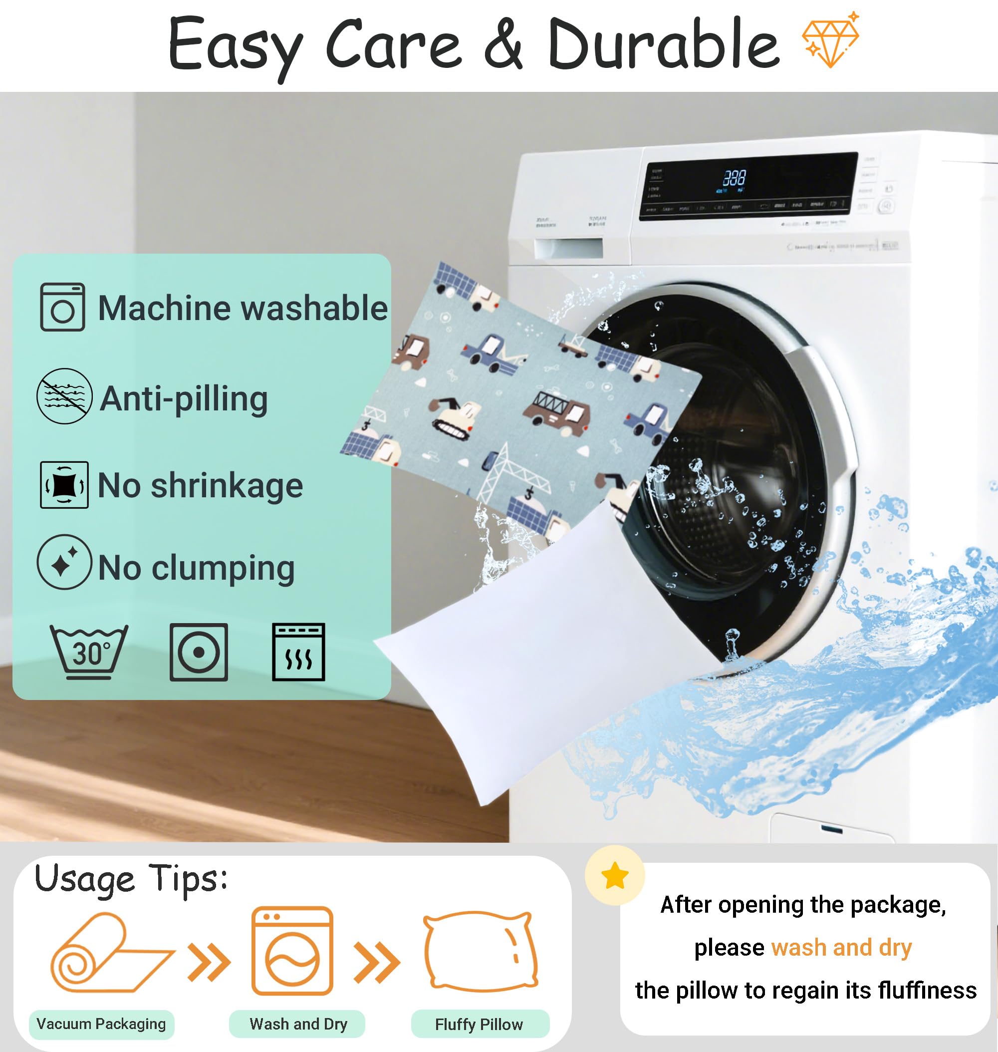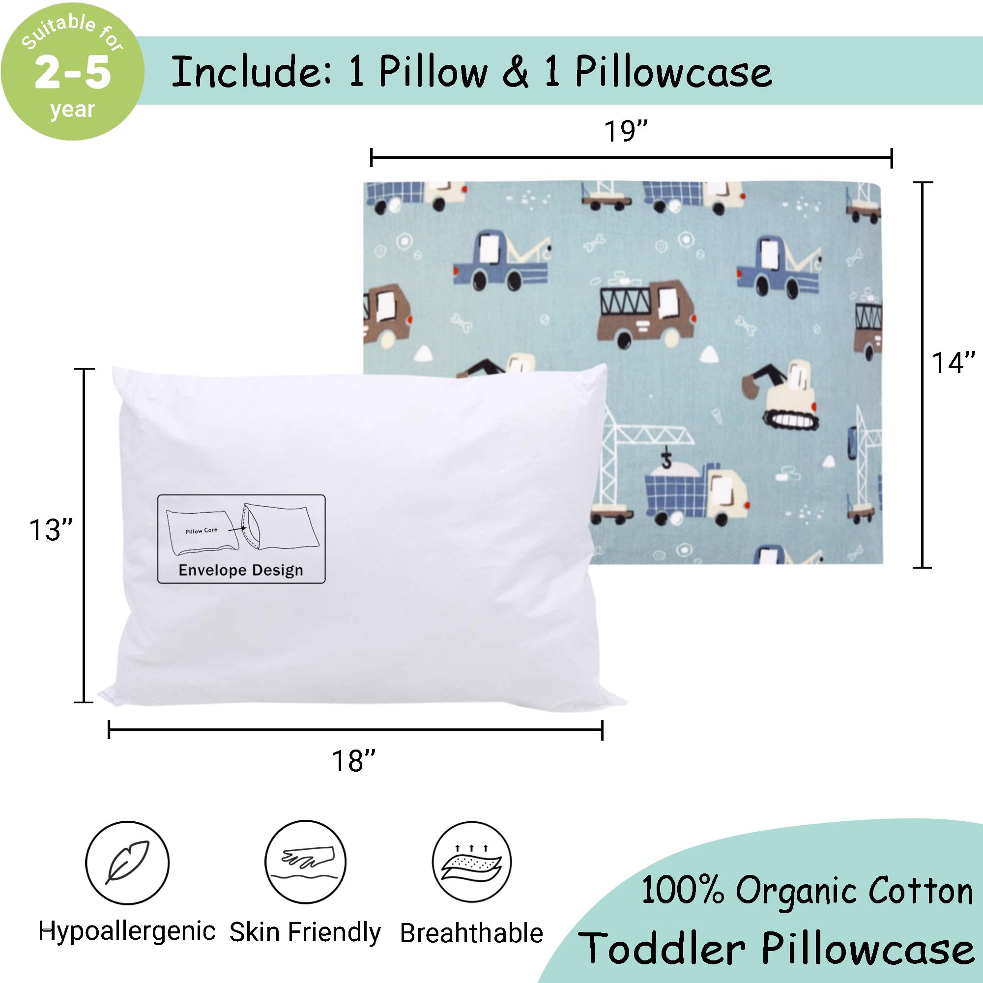 PACKAGE INCLUDE: 1 toddler pillow 13x18 and 1 toddler pillowcase 14x19, After opening the package, please wash and dry the pillow to regain its fluffiness