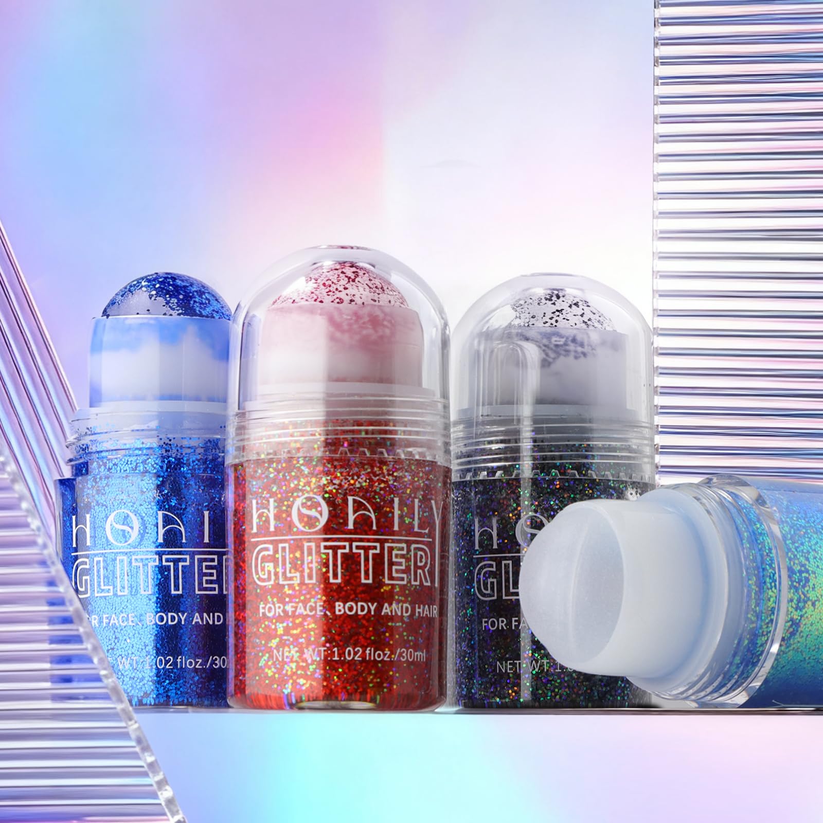 Roll On Body Glitter Gel: Our body glitter is convenient for using, roll-on design can make the glitter apply evenly to your face and body. When the ball rolling on your skin, you will feel comfortable and great touch, give you good experience without using hands