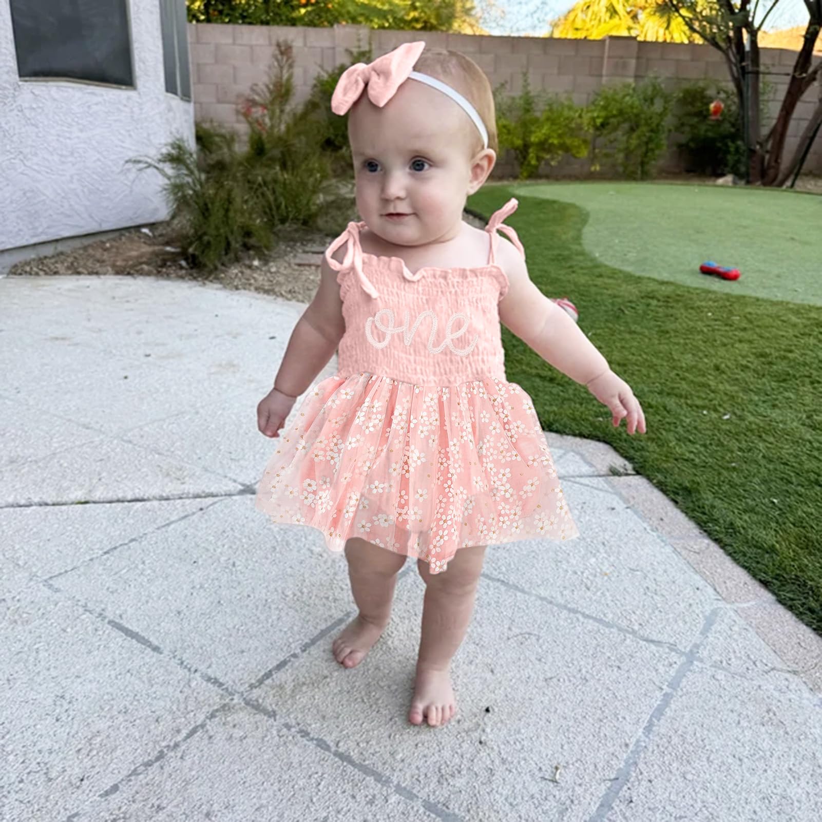 Design: Newborn baby girl playwear romper dress with sleeveless, solid color, multi-layered tulle, Snap leg openings for easy diaper changes, easier morning for novice mother.Cute princess 1st birthday outfit, fashionable and adorable embroidery ONE printed themed birthday clothes perfect for creating beautiful memory of her first birthday.