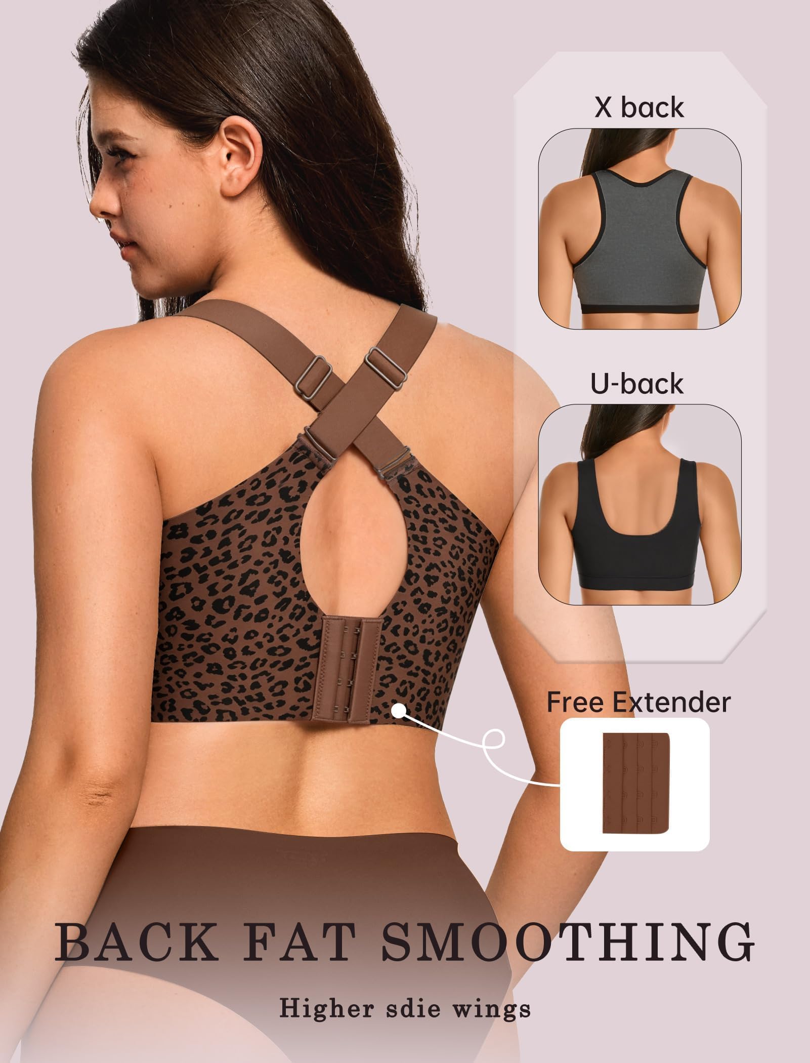 Widen Adjustable Straps - The bras reduce pressure on the shoulders, especially suitable for large chest. The wide shoulder straps prevent slipping or shifting, keeping the bra in place. Durable Straps offers all-day support and comfort. With special versatile strap design, you can easily switch between two stylish looks: sexy crisscross (X-back) or sleek U-back—no need for multiple bras!