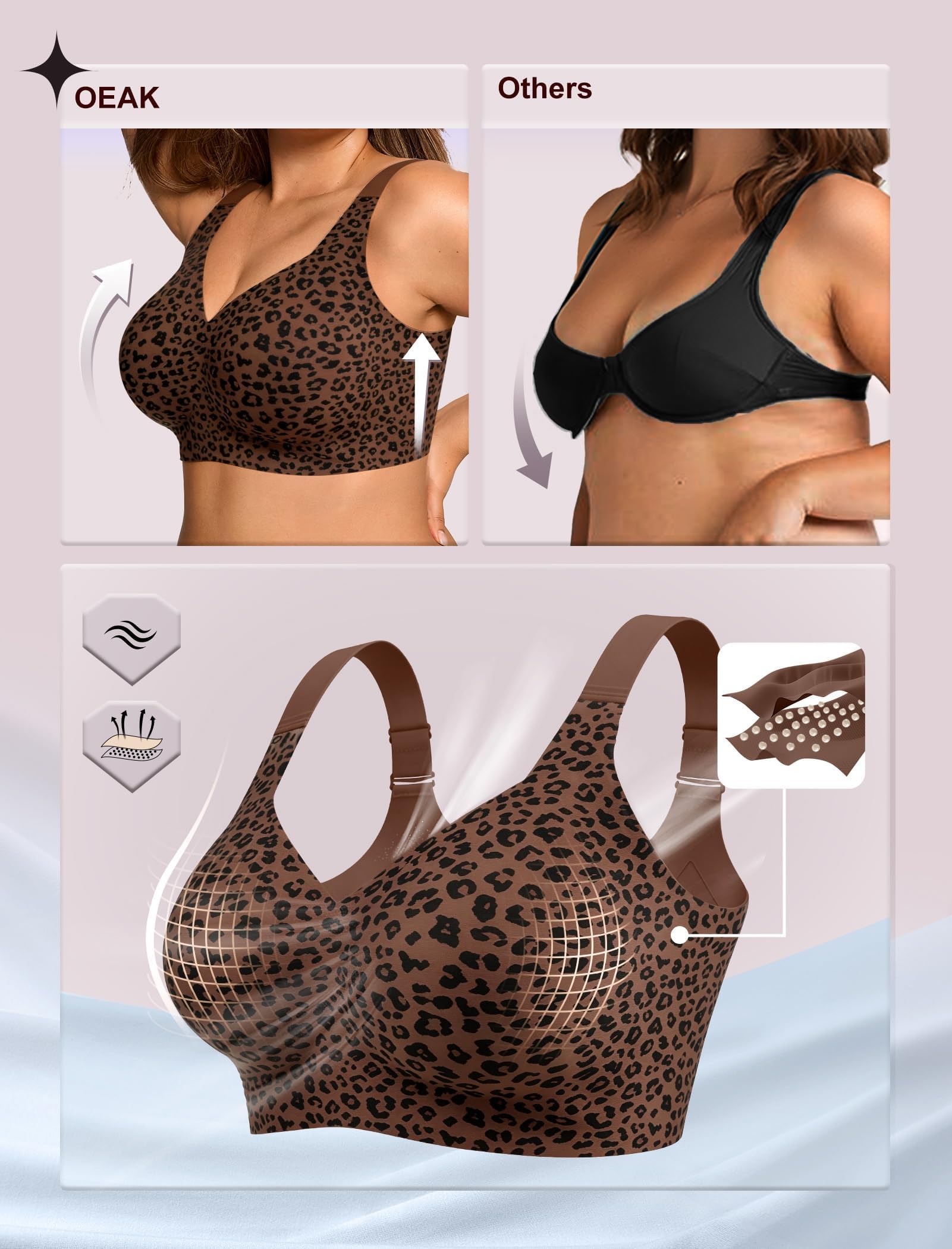 Seamless Tshirt Bras - OEAK Full Support Bras for women are perfect for work, lounging, dating, party, dancing or light activities-all day long. They can be worn under any clothing and serve as everyday bras, t-shirt bras, sleep bras, yoga bras, light sports bras, and pregnancy bras. Simply place the bra in a laundry bag before washing to retain its shape and elasticity. With proper care, it will stay as good as new for longer.