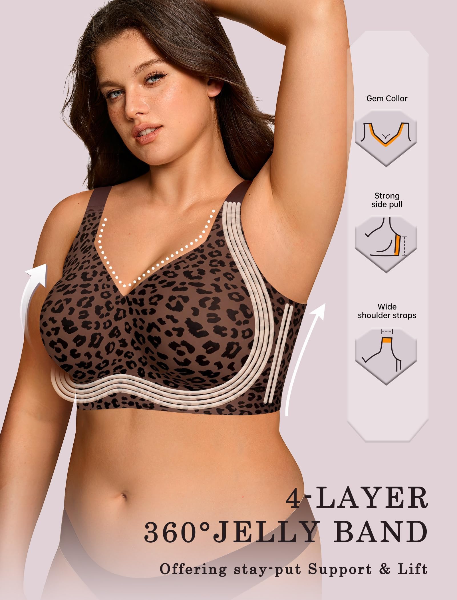 Full Coverage Bras No Underwire - The V neck Bras Designed with no wire to provide a natural relaxed fit while offering great support through 360° jelly bands, ensuring all day comfort. Lightweight bras keep skin cool and dry. The widened elastic band stays securely in place without rolling or shifting, ensuring stability during movement. A perfect combination of freedom and support for everyday wear.