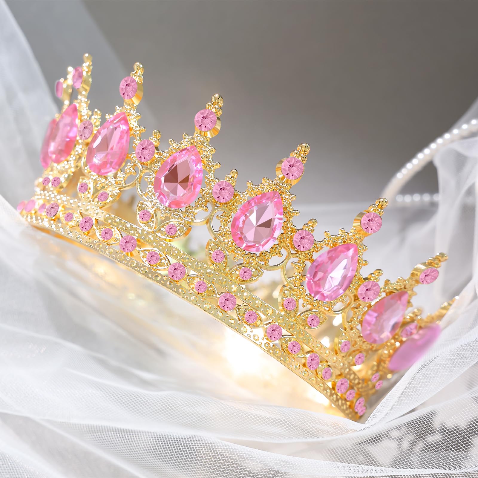 Pink Crown for Women Crystal Tiara and Queen Crown for Women Wedding Headband for Bride Hair Accessories for Costume Birthday Party Cake Decoration Prom