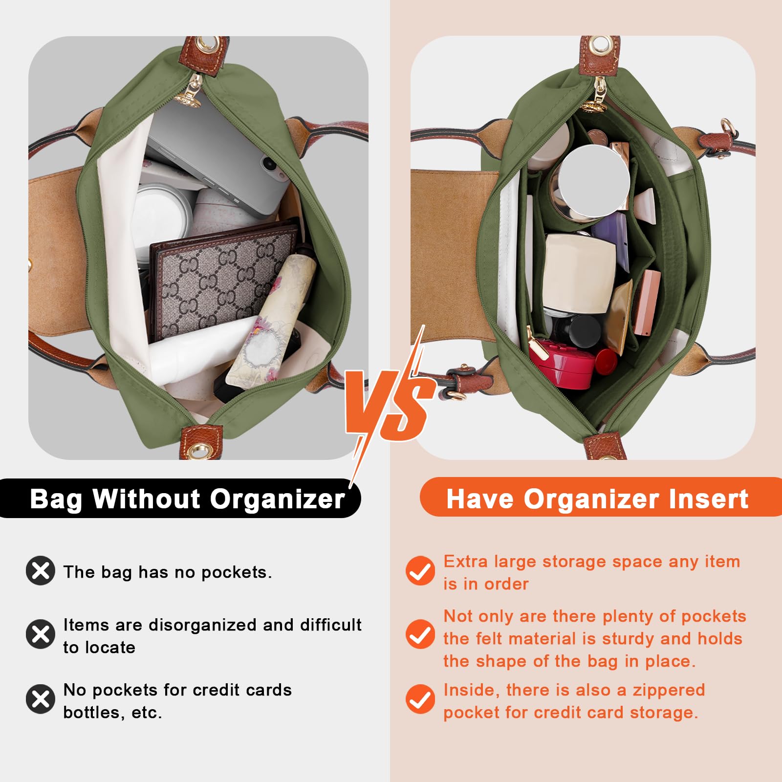 Organizer Same Shape as the Bag: An seperate Zipper Insert Which Helps Keep Your Valuable and Privacy Items Stored Well, And All Your Things Could Be Easy To Find. The Whole Tote Organizer is Also Sturdy Enough to Help Keep Your Bag In Proper Shape,IMPORTANT: This tote organizer is designed for Longchamp bags and does not include the bag, if you have a similar tote, please double check the size to ensure compatibility.