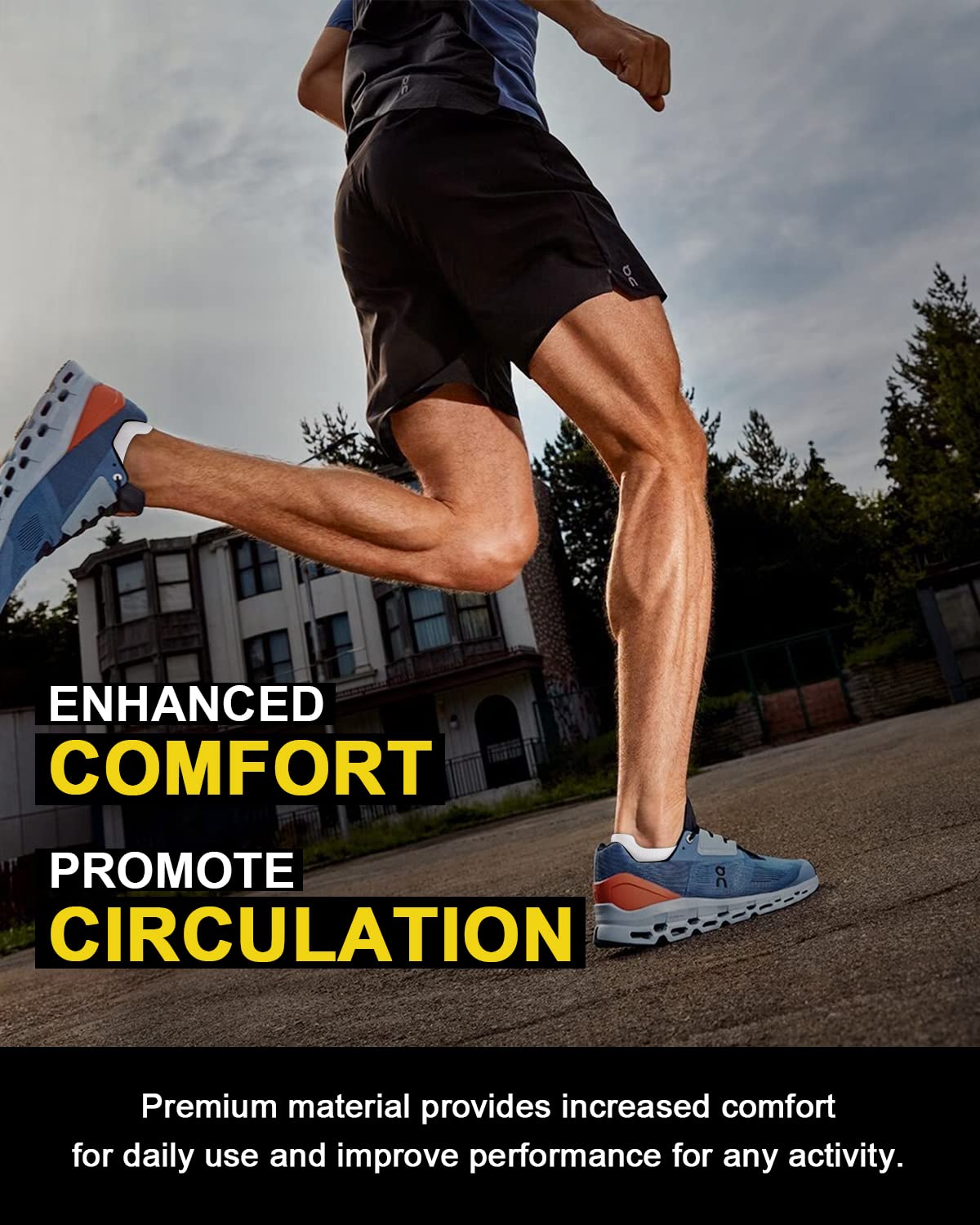 🏃PROTECTION & SUPPORT- Compression running socks can also help reduce swelling and inflammation in the ankle area. Compression ankle socks can provide additional support to the ankle joint, This added support can help prevent ankle sprains and other injuries, and can also improve overall balance and stability.