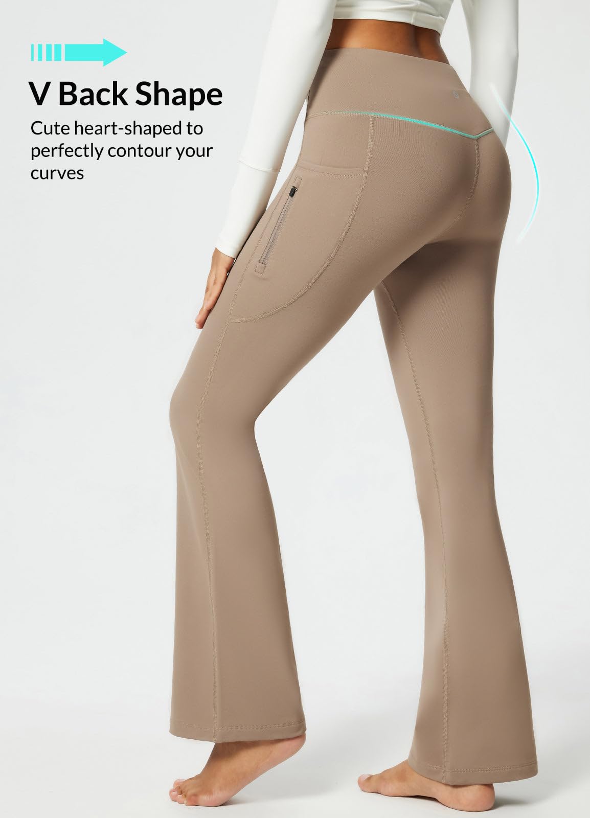 High Waist & Bootcut Design: These yoga pants feature a wide and high-rise waistband, offering gentle compression. Slightly flared pants shape visually slims the silhouette and fits any body type.