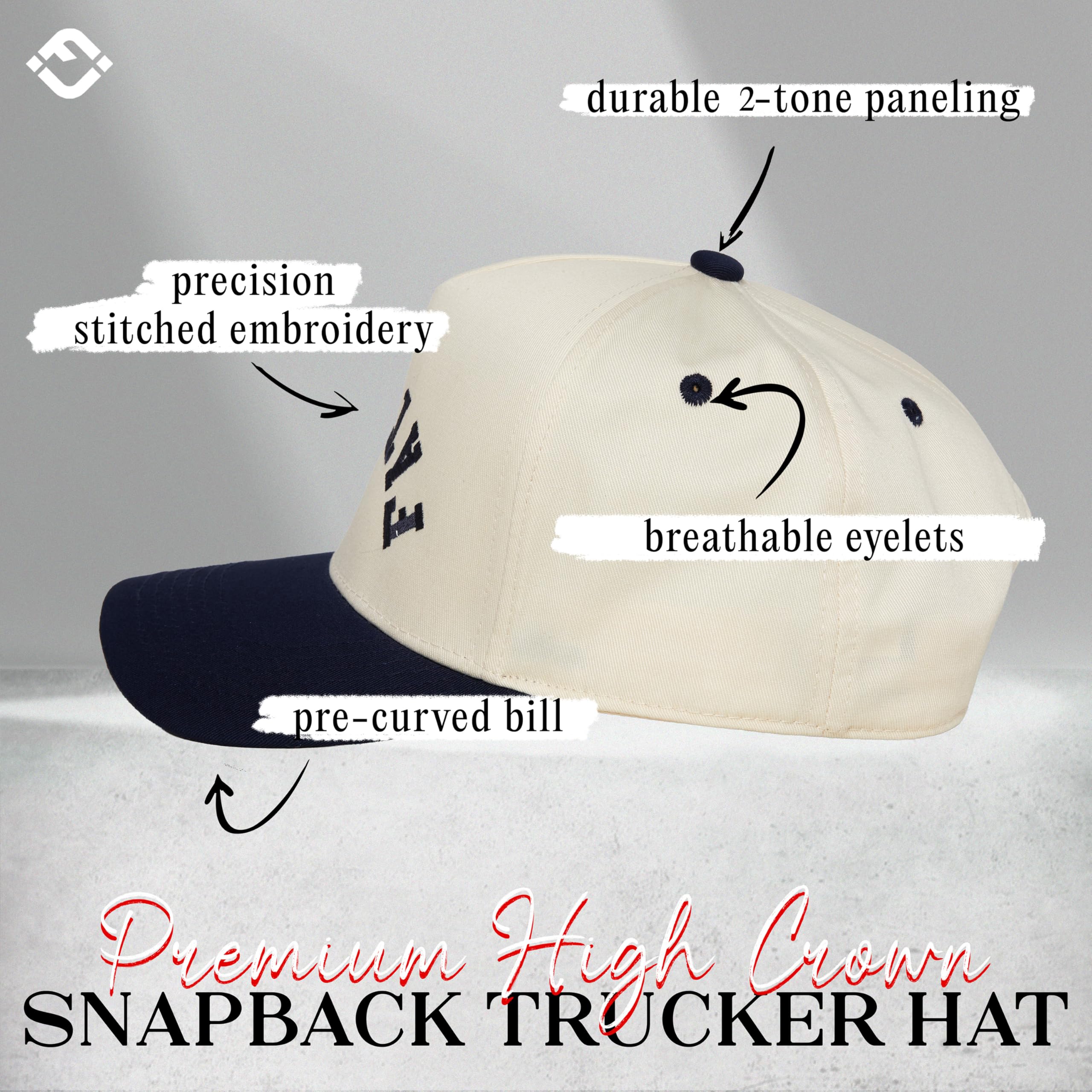 PREMIUM QUALITY: Made from a durable blend of 35% cotton and 65% polyester, this embroidered hat is lightweight, breathable, and comfortable for all-day wear. Its structured fit with a curved brim ensures it holds its shape, making it a top choice for beach trucker hats for women and mens trucker hats alike.