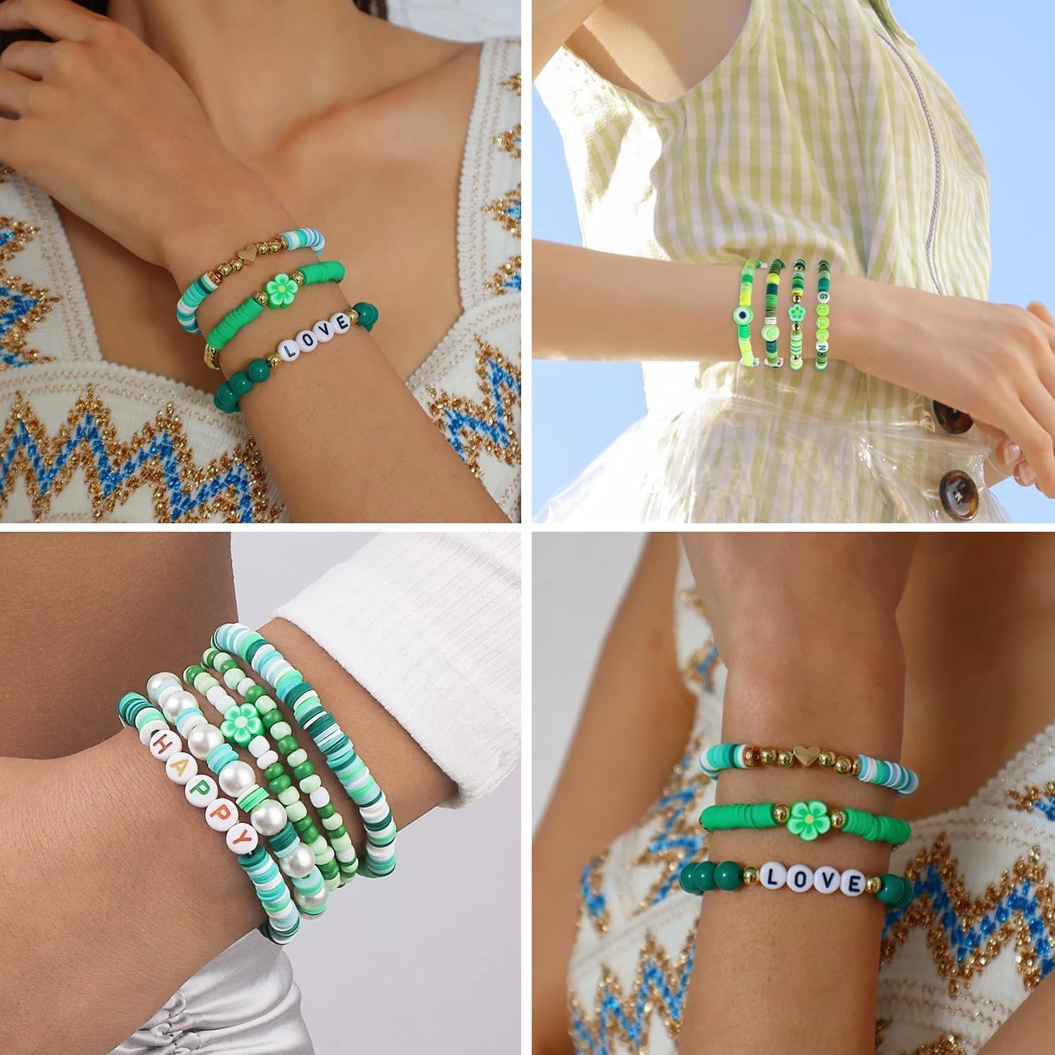Green Beads Kit:The box contains 3500pcs green clay beads in 5 colors,We have specially selected thick cardboard and plastic packaging to reduce the risk of bead loss and misalignment during transportation.