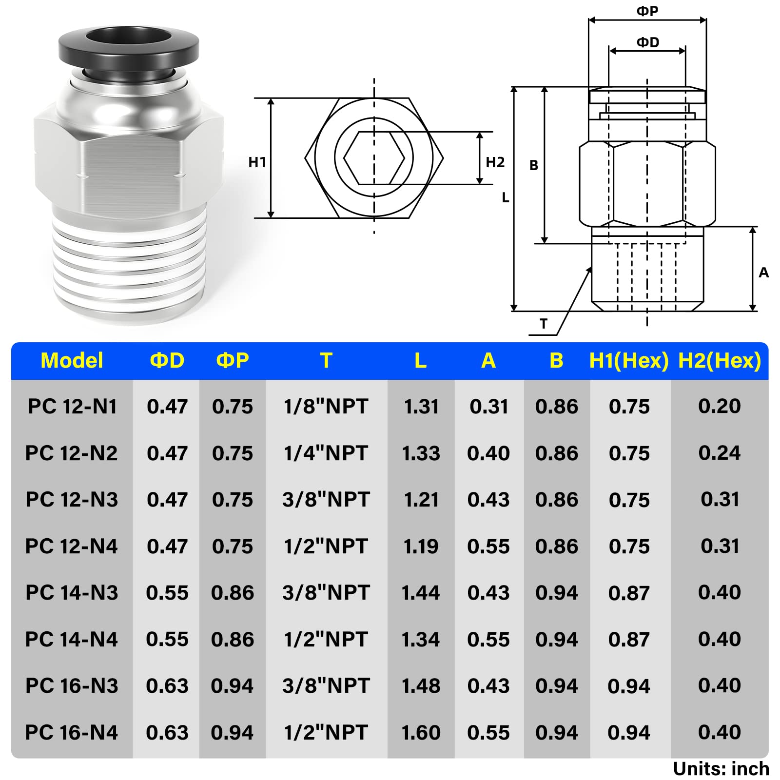 【Size】12mm Tube OD x 1/4" NPT Thread,Notice - NPT Thread Size is a Nominal Pipe Size, and it Does Not represent the actual diameter