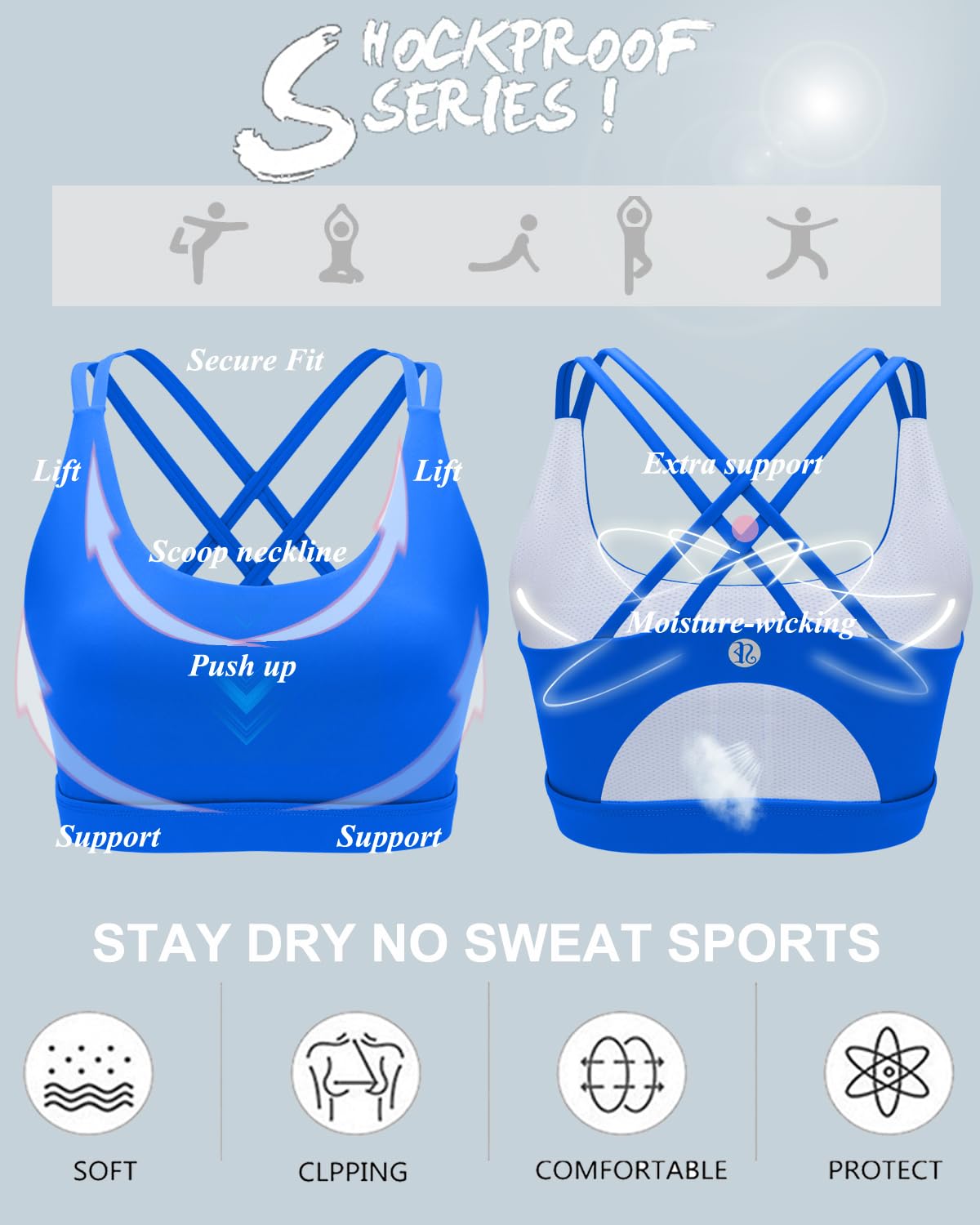 √MEDIUM SUPPORT- Perfect for A/B cups, Light compression sits close to keep everything in place and minimizes bounce, elastic band underneath, prevent rolling up. Whether you're running a 10k or just running some errands, the sports bras for women high impact will serve your lifestyle's needs. Perfect for tennis, running, yoga,workout or whatever else you throw at it.