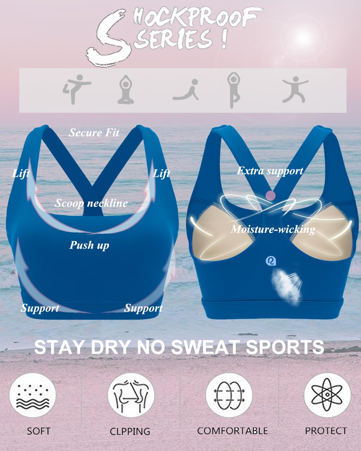 ✅ 【SWEAT OUT IN STYLE! 】: Made from a flexible four-way stretch fabric that supports your body as you move. Enjoy the freedom of movement as the open back styles aim to keep you comfy and cool while you bring on the heat! Running sports bras for women with wide waist band for that support we all need!