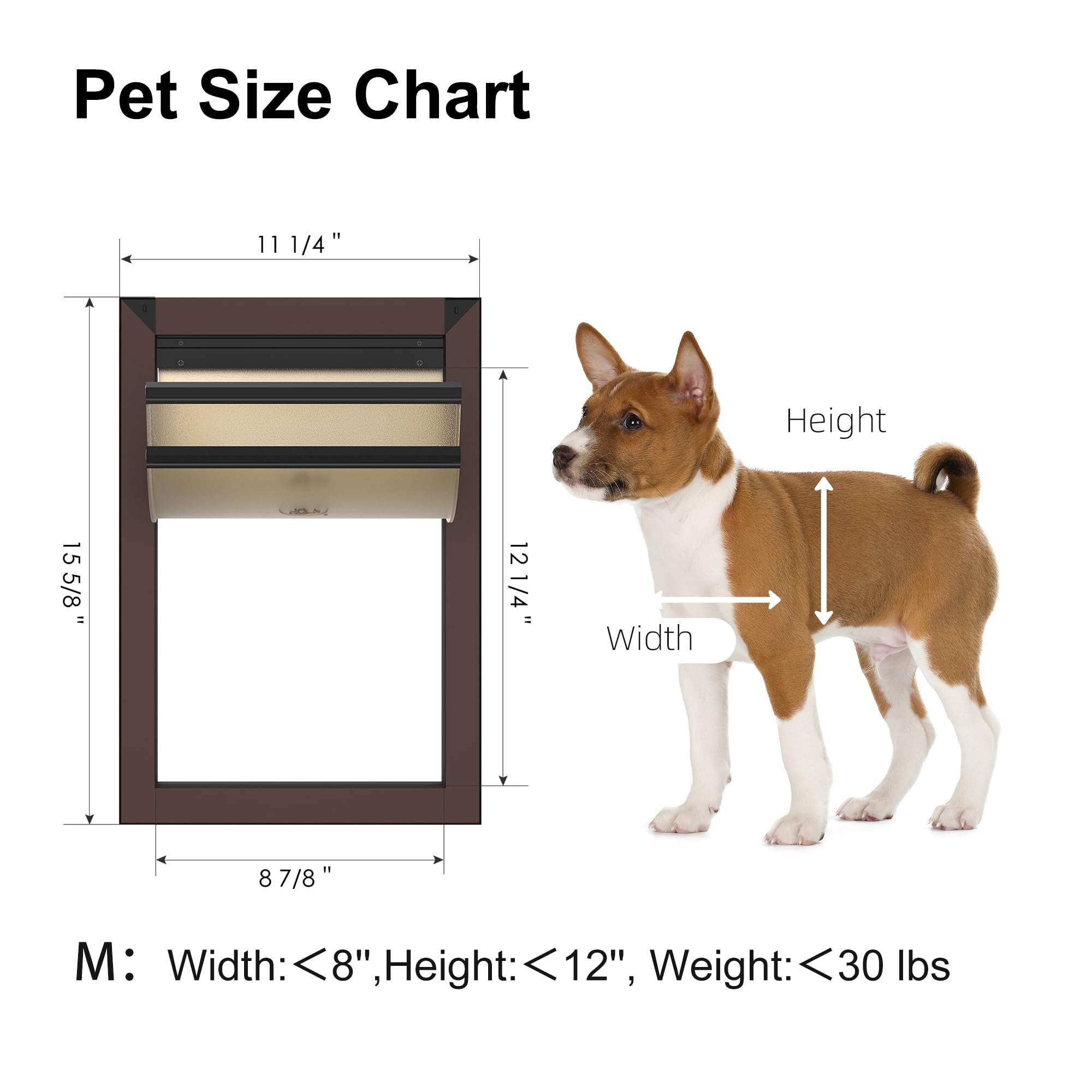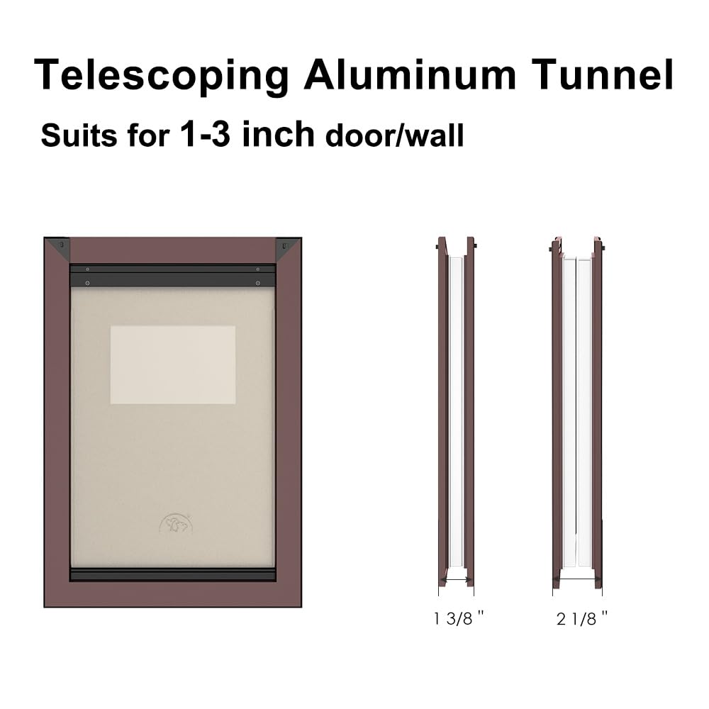 【Telescoping Tunnel】Our doggy door fits paneled, wood, PVC, and other doors 1 3/8'' - 2 1/8'' thick, and is designed for pets up to 30/80/220 pounds.