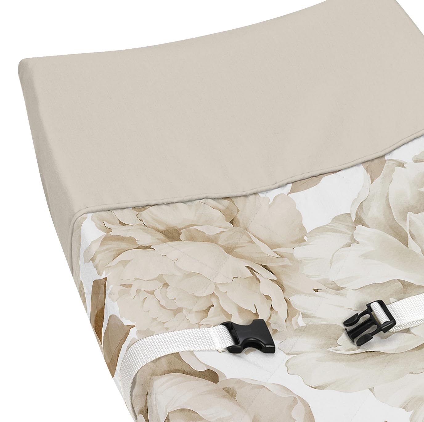 This brushed microfiber diaper pad cover features an exclusive design of a taupe, beige, tan, off white, ivory and cream boho shabby chic bohemian vintage garden flower nature elegant watercolor floral print.