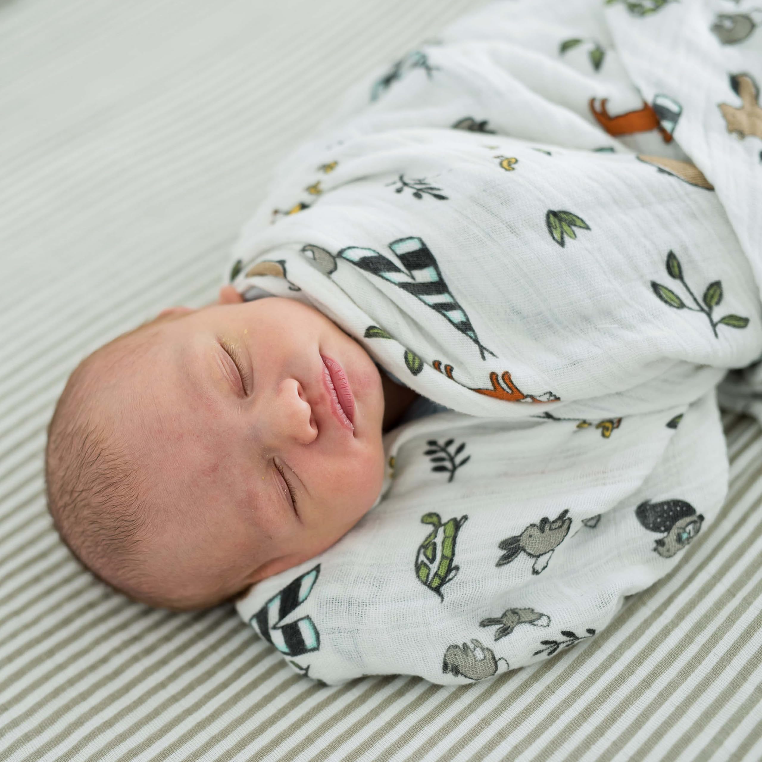 Little Unicorn Premium Muslin Swaddle Blanket 3 Pack | for swaddling, Play, Nursing & More | Giftable Set of 3 (Forest Friends 2)
