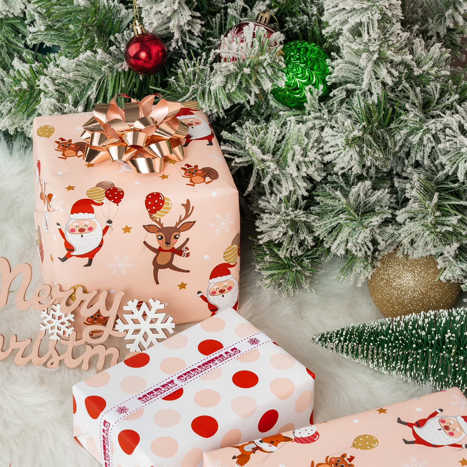 Perfect Size: Each roll measures 30 inch wide x 33 feet long. Providing you with a total of 81.8 square feet of paper, sufficient to cover a wide variety of gift sizes. Reversible Design: Dancing santa claus and reindeer printed on one side, colorful polka dots printed on the reverse. Two different designs make unique and varied gift presentations easy. Premium Quality: Created with high-quality paper materials, thick and not easily tear or rip. Item came with shrink film to prevent wrapping paper from scratches and reduce dust. Use All Winter: Whether it's the joyous celebration of Christmas or the holiday season filled with family gatherings and gift - giving traditions, it is an outstanding choice. It is also great for decorating the Christmas tree. Wrap Your Love for Christmas: You can wrap your love with our special Christmas wrapping paper, adding a splash of color to all of your gifts. Your family, children, and friends will feel your sincere Christmas wishes this holiday season. Quality Customer Service: Any question about products or orders, please feel free to contact the customer service, we will try our best to solve the problem.