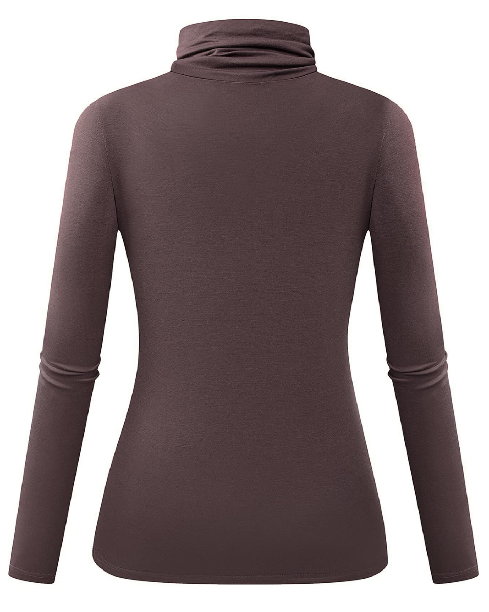 Long sleeve t-shirt with turtle neck. Size XS Length 24in, Size S Length 24.6 in, Size M Length 25in, Size L Length 25.4 in, Size XL length 25.8 in, Size 2XL Length 26.4 in.