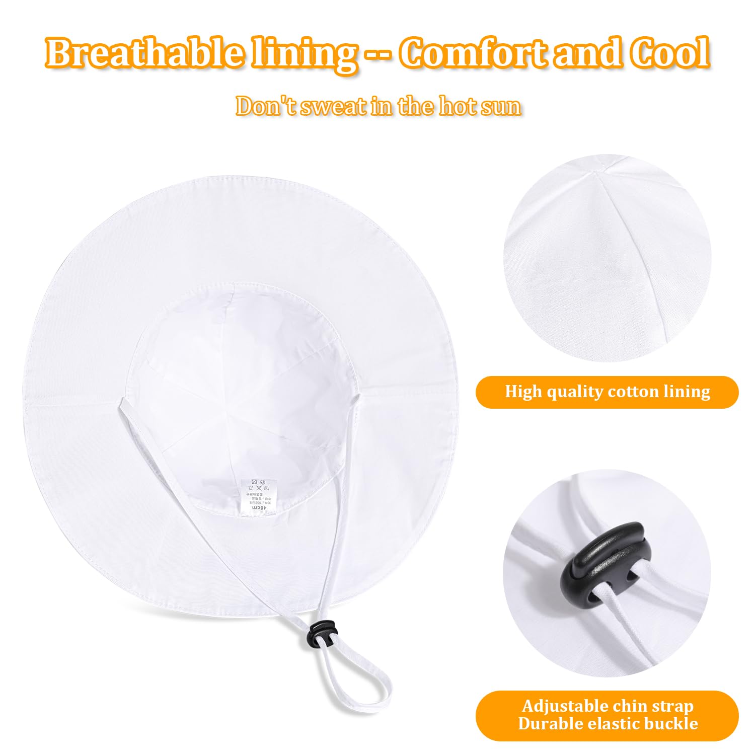 ADJUSTABLE: Outer hat drawstring offers a customized fit and adjusts as your baby grows.Chin-strap feature helps ensure that the baby sun hat remains secured on when windy.Both the head strap and the chin strap are adjustable to easily create the best.