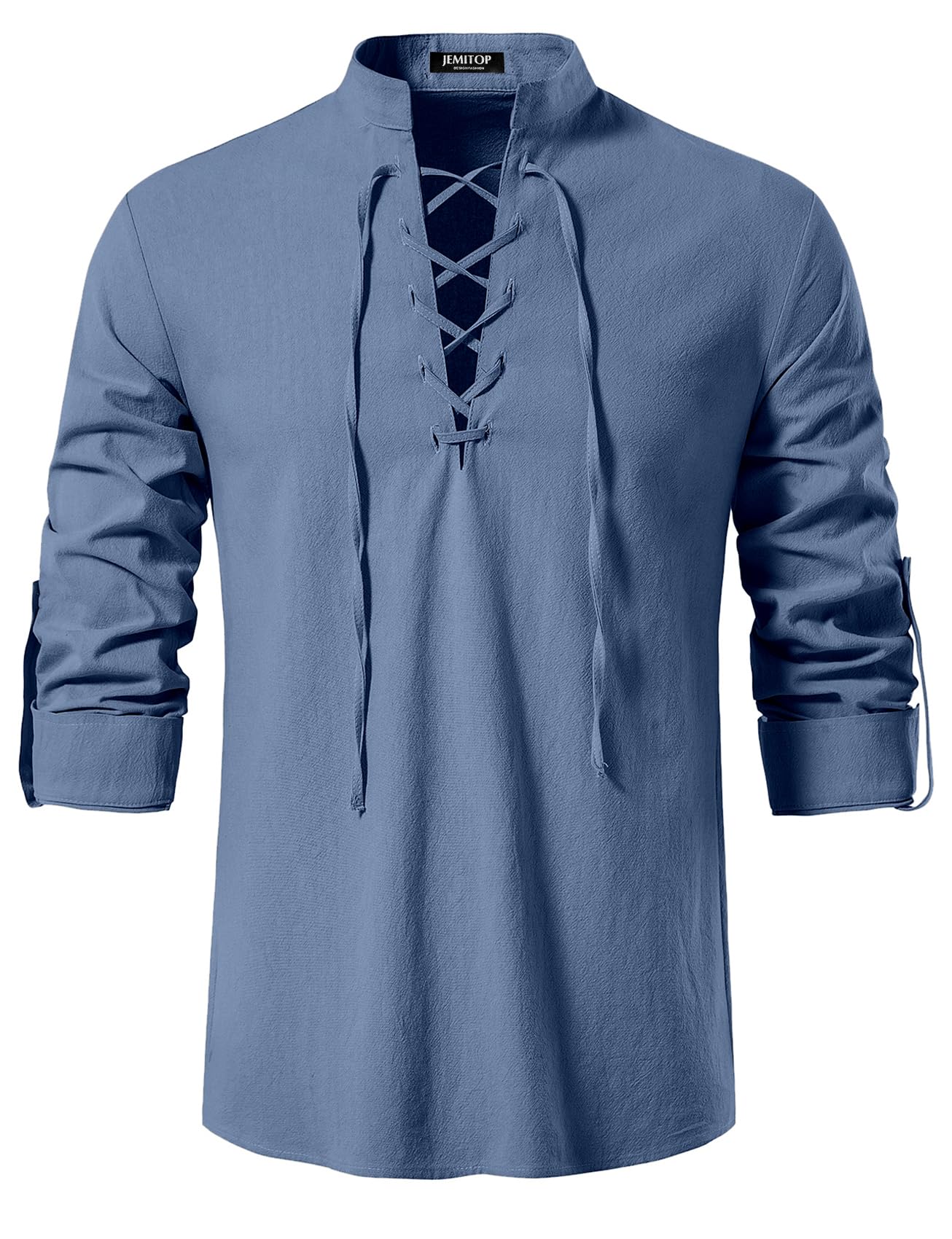 Design Concept: Cosplay costume for renaissance,pirate,viking,medieval,halloween / Retro drawstring shirt / Regular fit / Mandarin collar / Long sleeve / Rolled sleeve