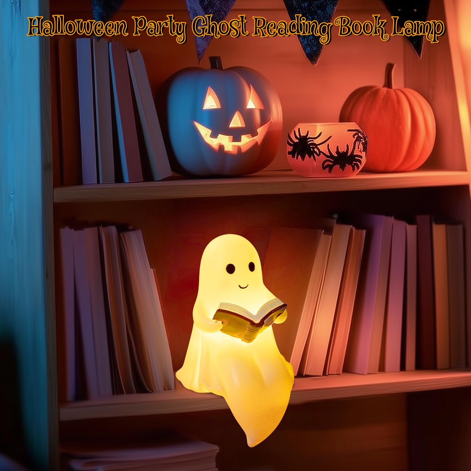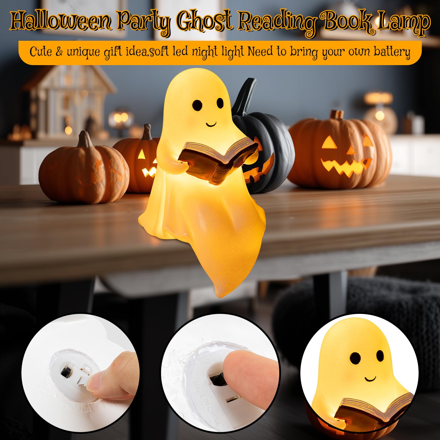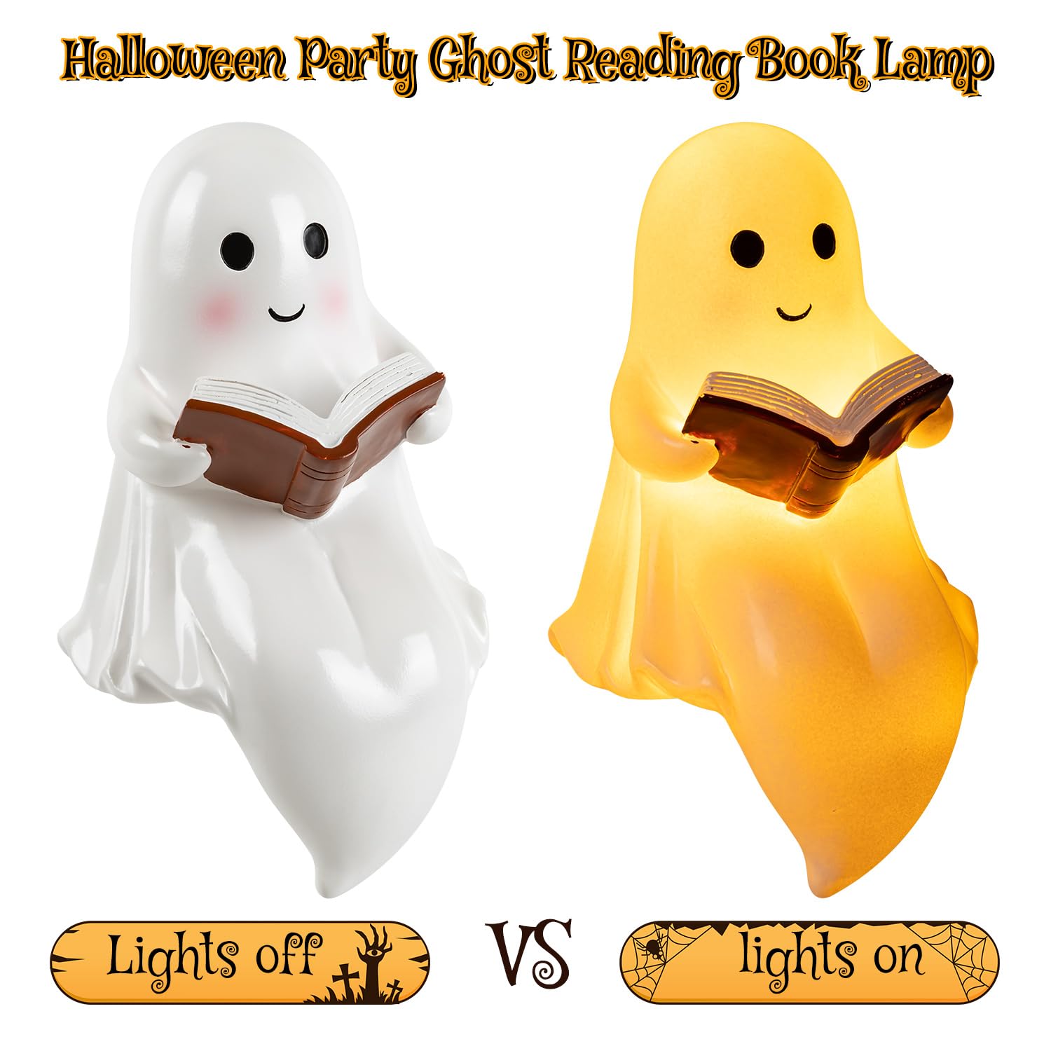 Clussbin Halloween Party Ghost Reading Book Lamp, Halloween Ghost Night Light, Cute LED Lamp for Bathroom Decor, Ghost-Themed Bathtub Lamp for Halloween Party or Gift (C)