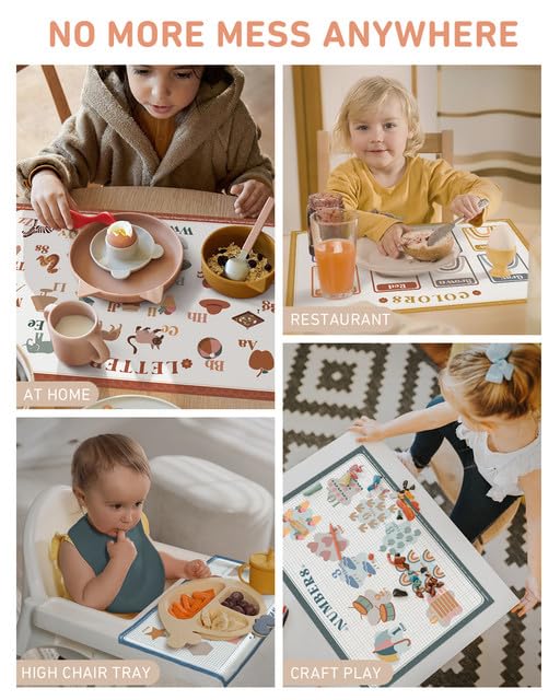 Easy To Use: Our sticky kids placemats have 5-sided adhesive strips on the back to ensure placemat stays in place. Easily peel off for a sanitary surface for meals, crafts or play. Just pull it off and throw away for post-meal cleanup. Won't damage table
