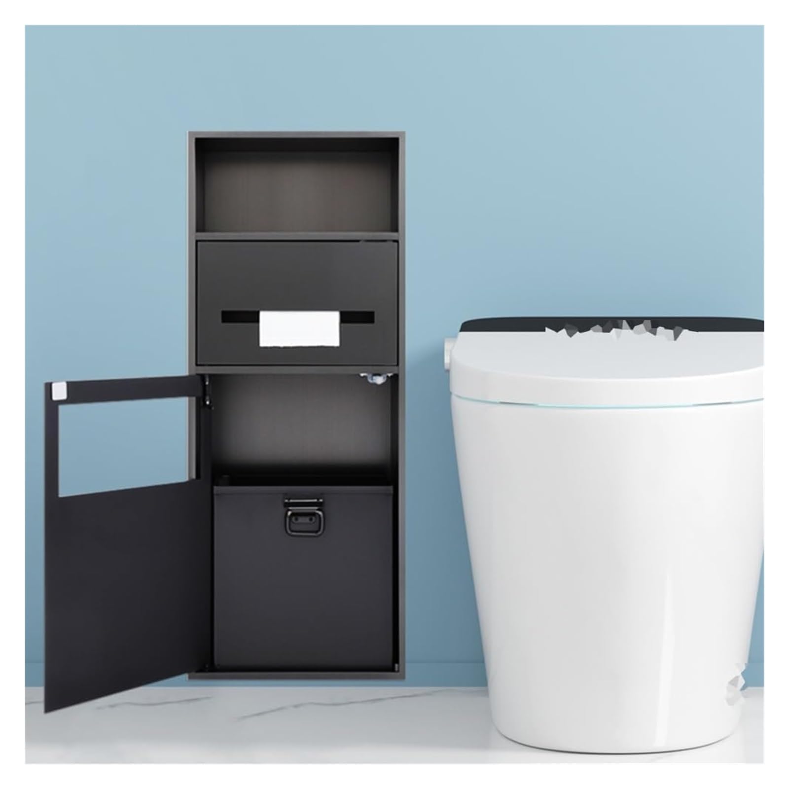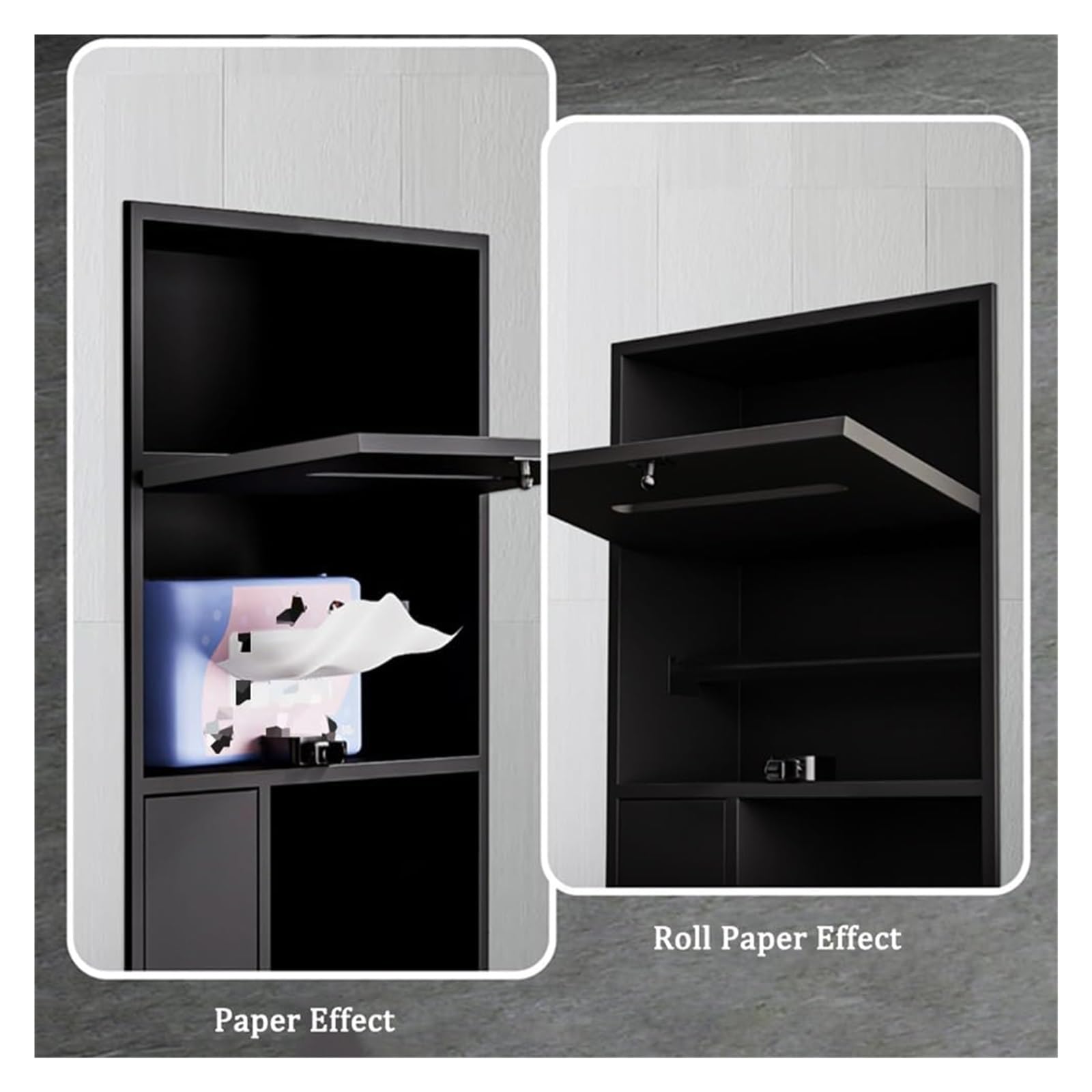 ✔️ Two-level design: the top toilet paper holder can be switched between rolling and pumping paper modes, which is convenient and fast; the lower cabinet door adopts a push-type rebound switch, which is more convenient to carry.