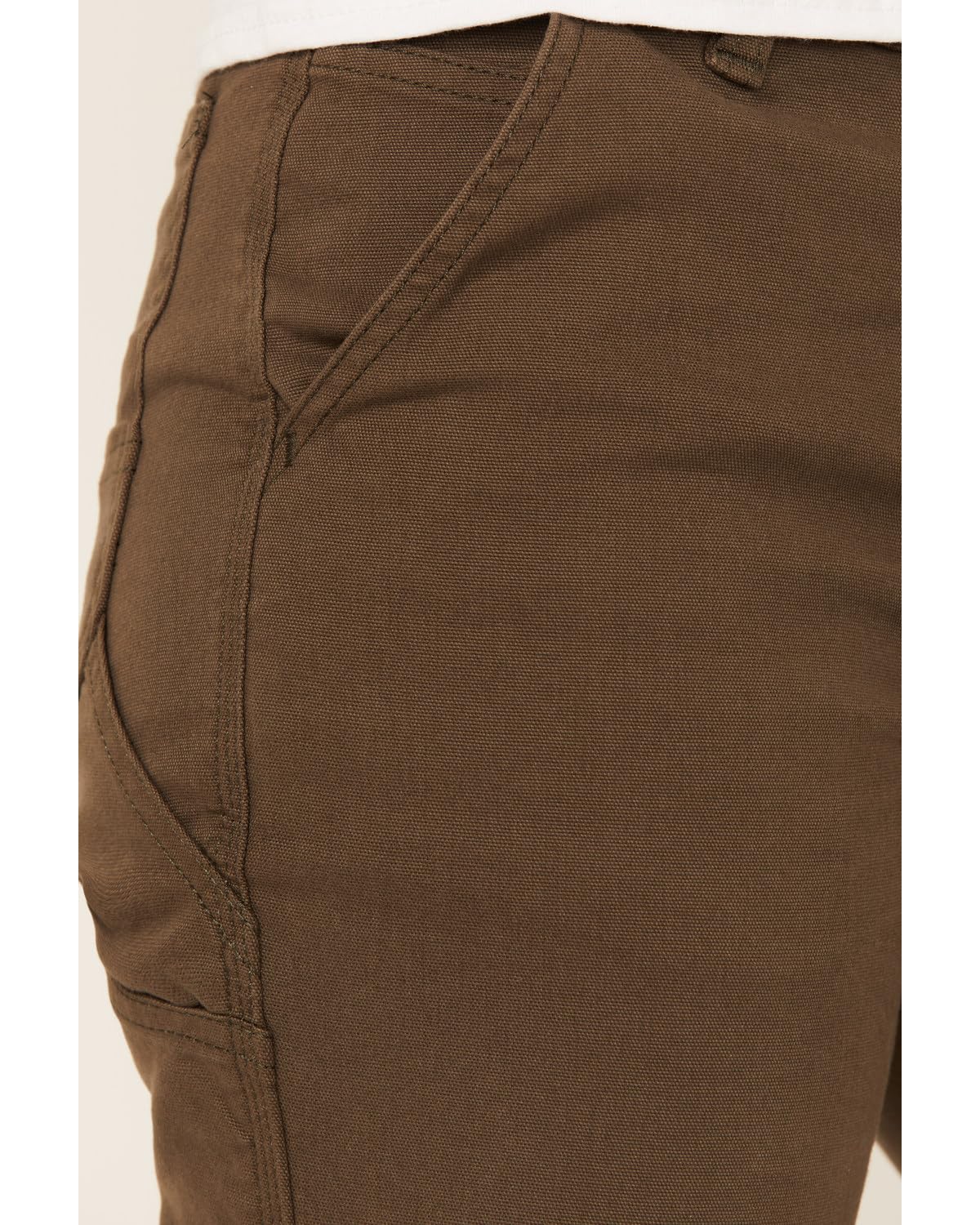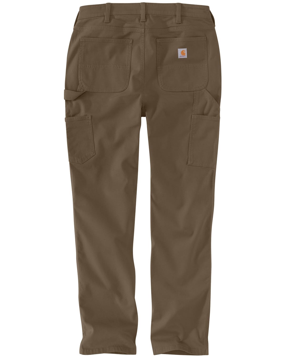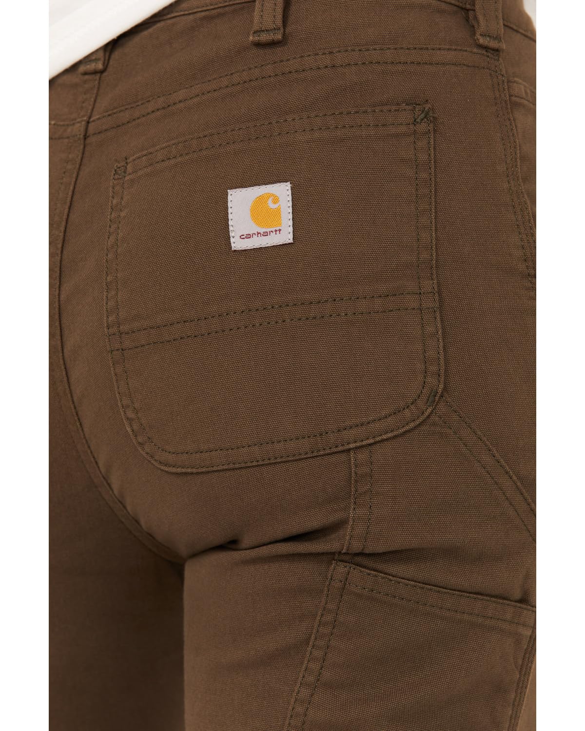 Description Built-in stretch gives these women's Carhartt canvas pants a comfortable, easy-moving feel. Midweight canvas and a stretch waistband offer everyday comfort. Their relaxed fit means a little extra room in the seat and thigh for easy movement.