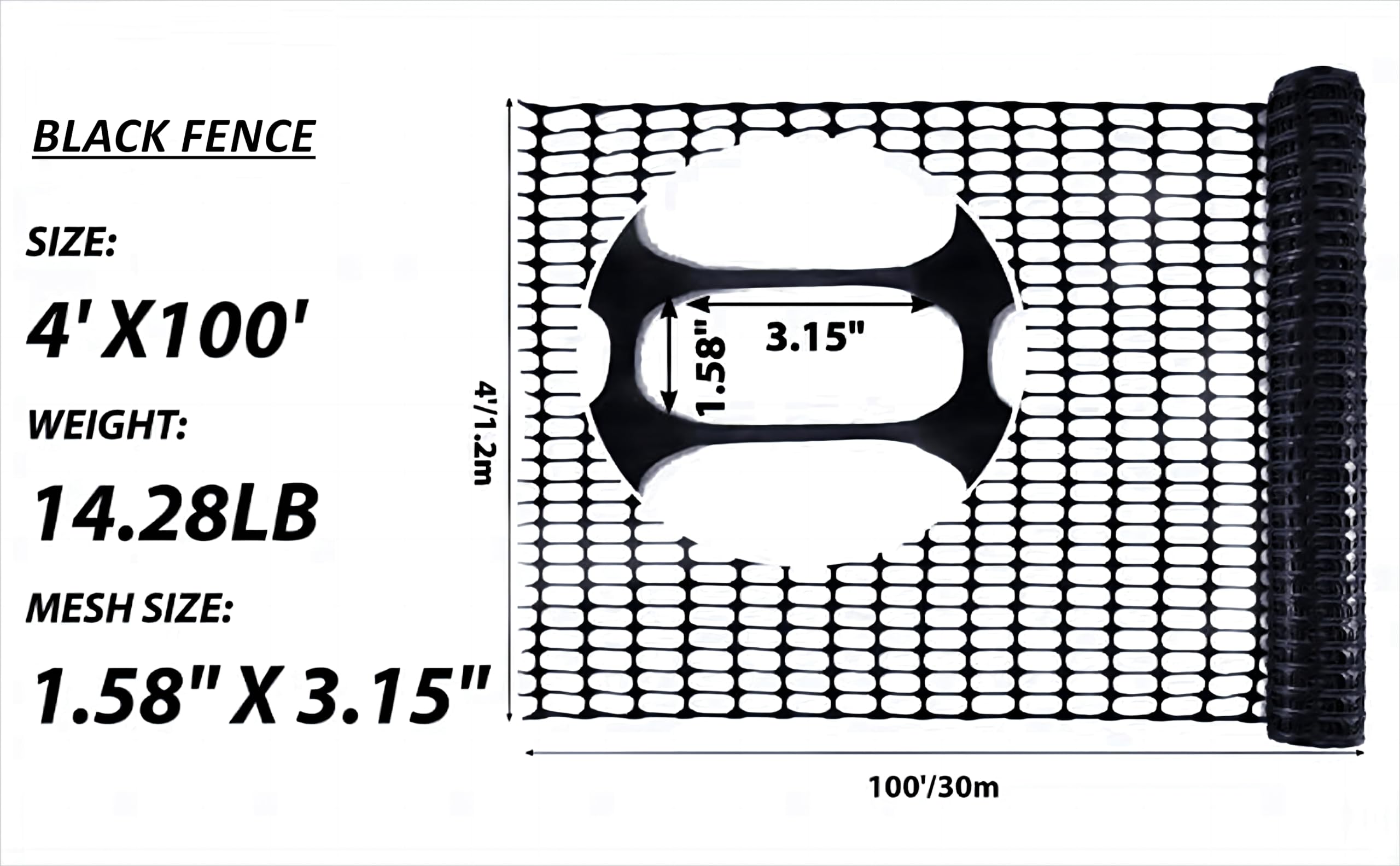 Convenient Combo Set: Our product package consists of a 4' x 100' (1.2m x 30m) mesh fencing roll that weighs 14.28 lbs. You'll also receive 100 zip ties to easily secure the PotatoLife Fence to any object, and 1 pair of gloves to make installation safe and comfortable. If you encounter any issues with the product, please feel free to contact us. Our team is always available to assist you.