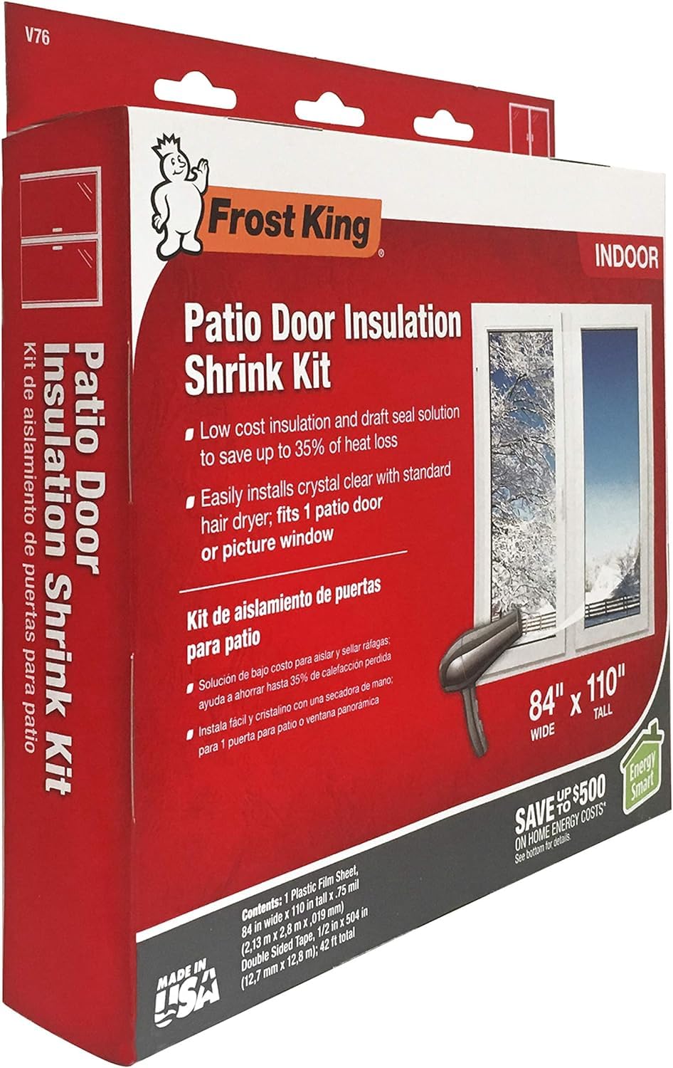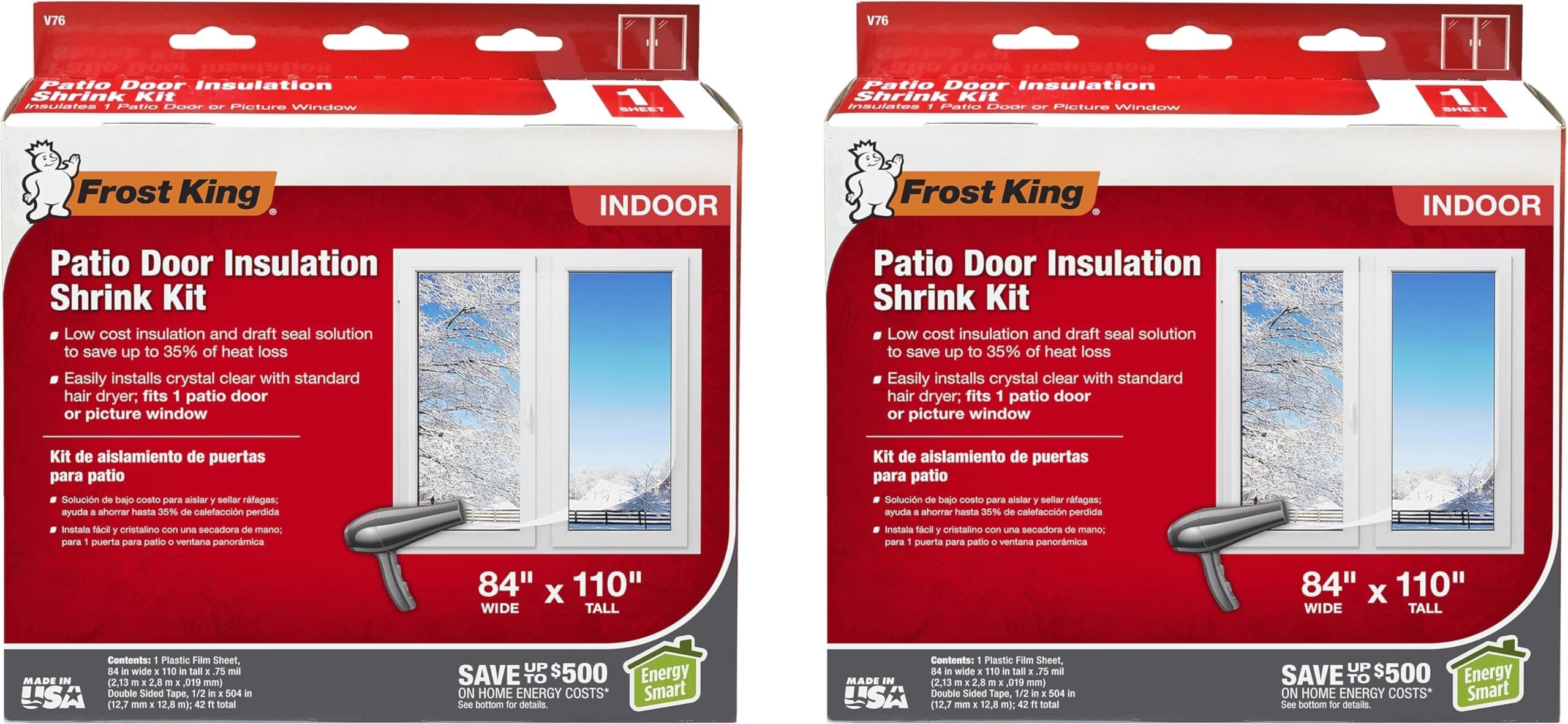 Patio Door Kit, Width 110 In. , Length 84 In. , Color Clear, Material Plastic, For Use With Patio Doors, Mounting Tape - Pack of 2