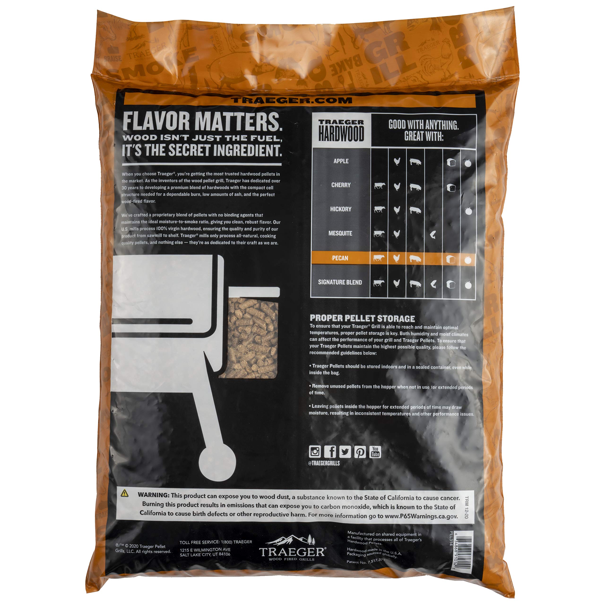 PECAN WOOD FIRED FLAVOR: Traeger Pecan Hardwood Pellets offer an ultra-versatile, slightly nutty flavor that works with any meat, not to mention veggies, fish, and even baked goods.