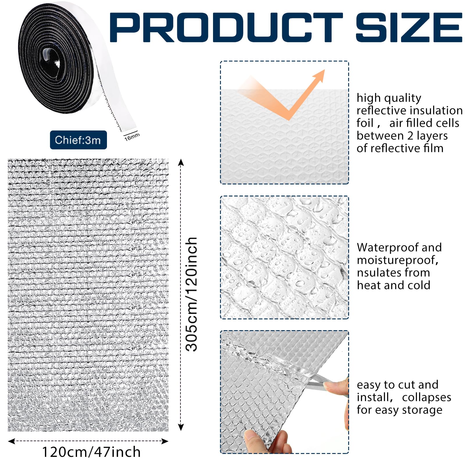 Good Performance: double aluminum foil has good sealing performance, not only blocks the sun but it avoid heat loss and keeps the room cool; This reflective insulation also acts as a barrier and protects your privacy with its opaque foil surface