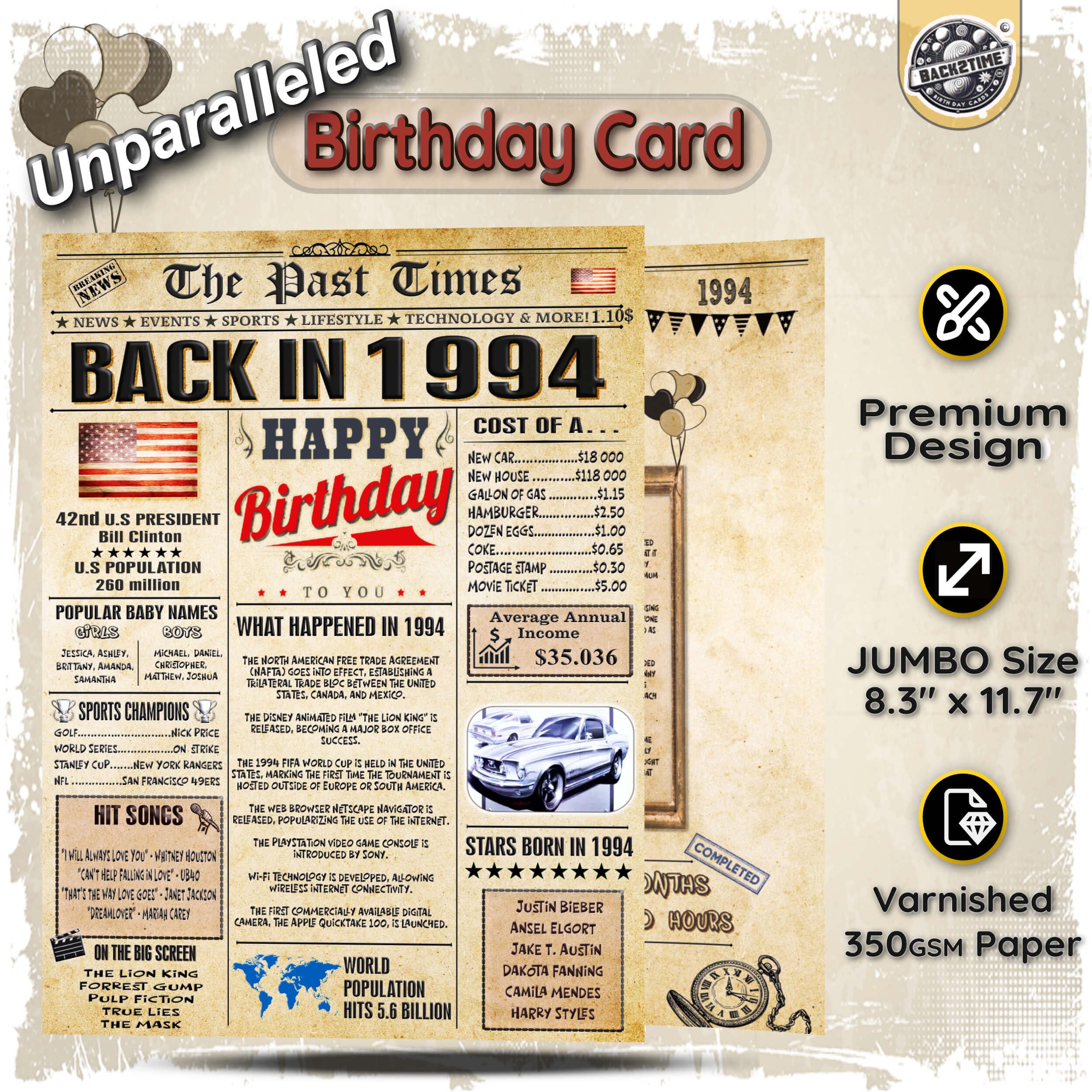๐ FUNNY BIRTHDAY CARD + EXCLUSIVE ENVELOPE ๐ Enjoy a beautifully printed Back in card that's entertaining to read, featuring a special bonus on the back with intriguing stories or lesser-known facts from that year. The interior offers space for personalized messages, designed with an aged appearance and elegant decorations to enhance the vintage feel. The included envelope boasts a unique design ideal for mom and adult born in 1994. Birthday Cards for Women, Birthday Cards for Men.