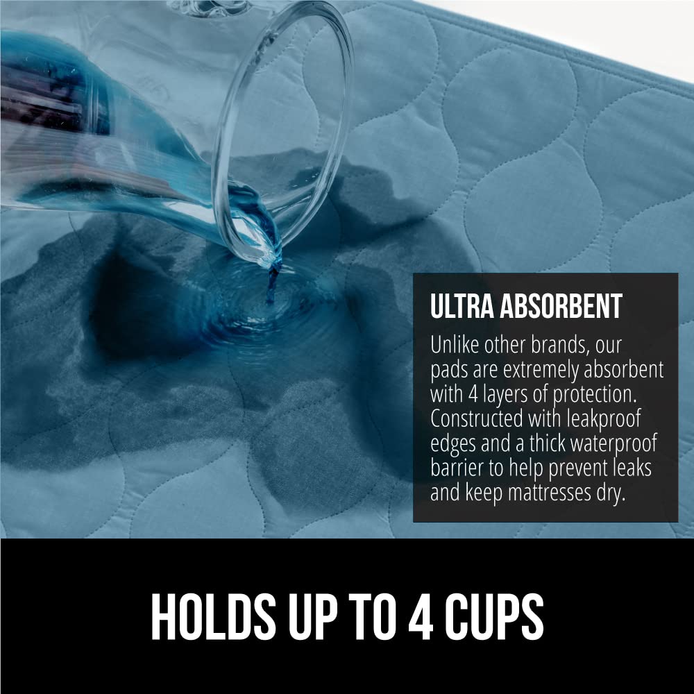 LEAK PROOF PROTECTION: 2 pack; our pad can hold up to 4 cups of liquid, much more than others; moisture is quickly absorbed into the pad and then dispersed throughout, helping to prevent leakage; also features leak proof edges, resilient inner layers and a thick waterproof barrier to offer additional, unparalleled protection that will give you the comfort and security you need