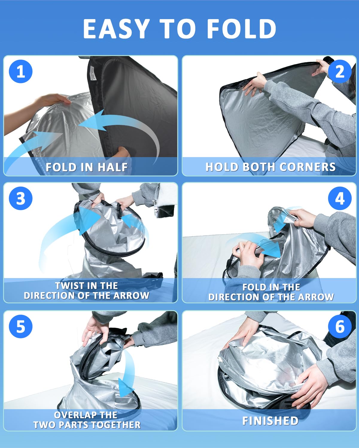 【The latest upgrade】The sunshade is made of 240T fabric with a thicker density, Nano coating, 4 anti-UV layers, and better reduce of the heat and UV rays.Double D-shaped steel ring design, So useful is the sunshade that allows you to enter the car easily.