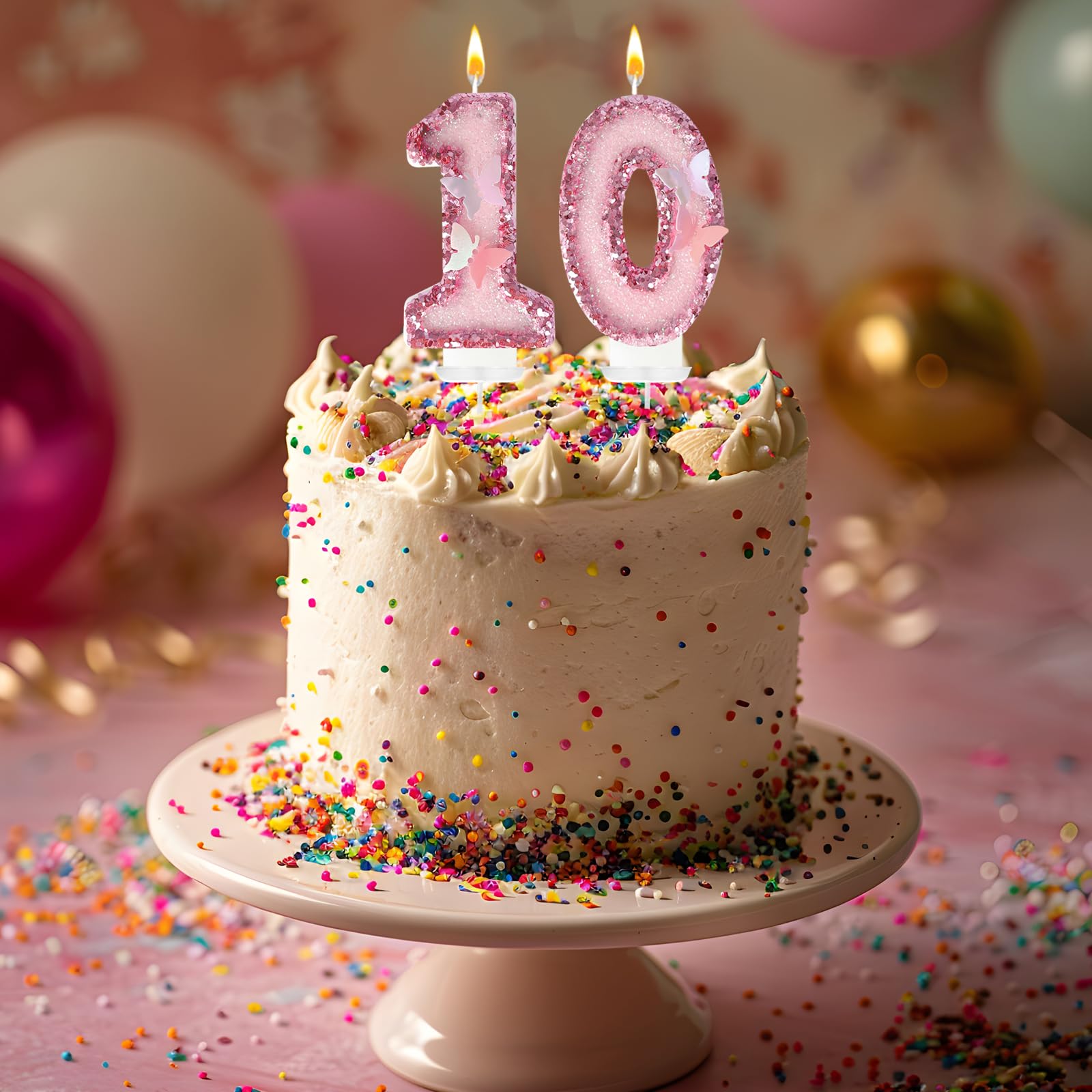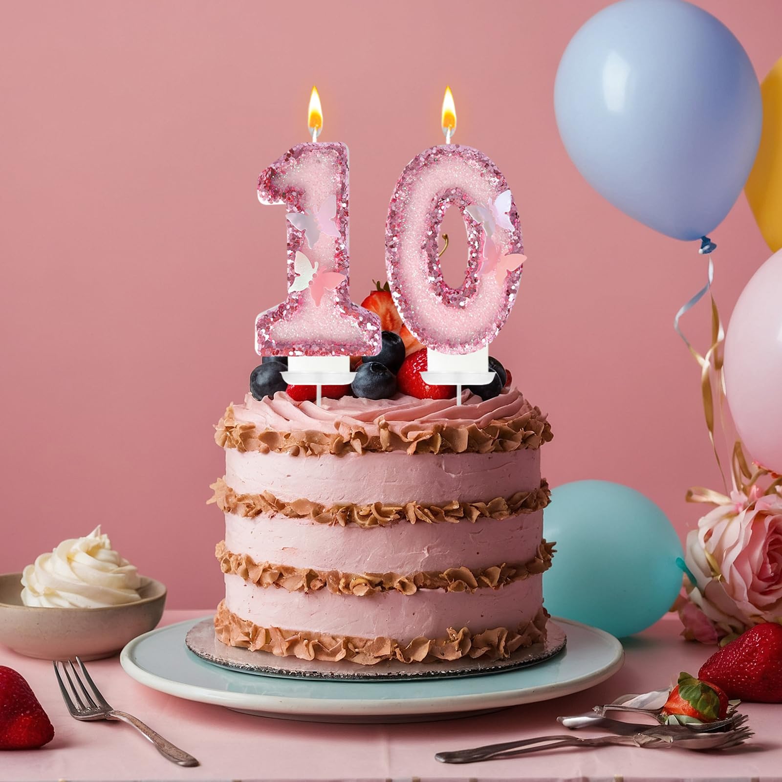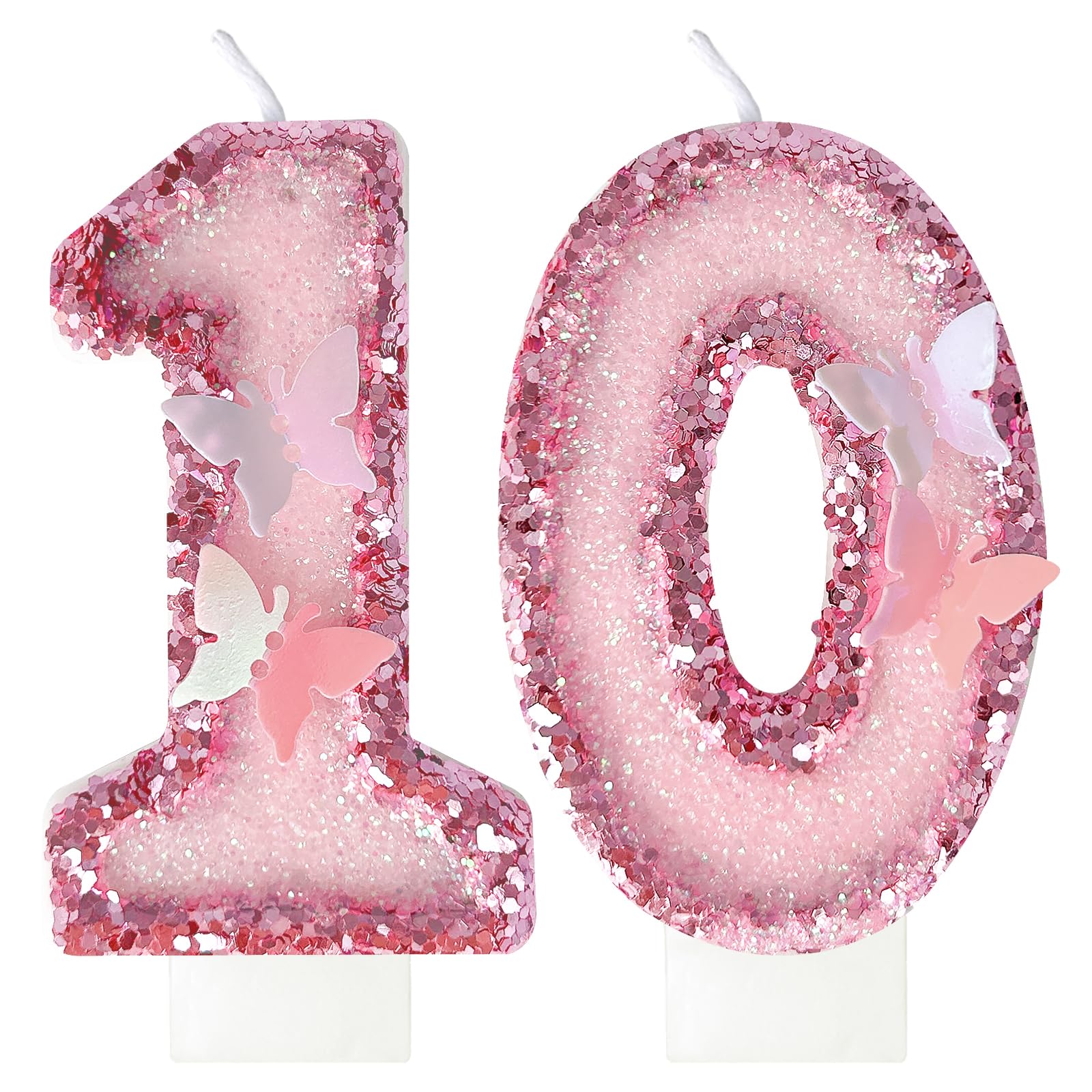 JonesLi 10Th Birthday Candles,Glitter Butterfly Cake Toppers Pink Sequins Wedding Numeral Cupcake Decorations,Suitable For Girl And Boy Wedding Cakes, Party Celebrations, Birthday Decorations (10)