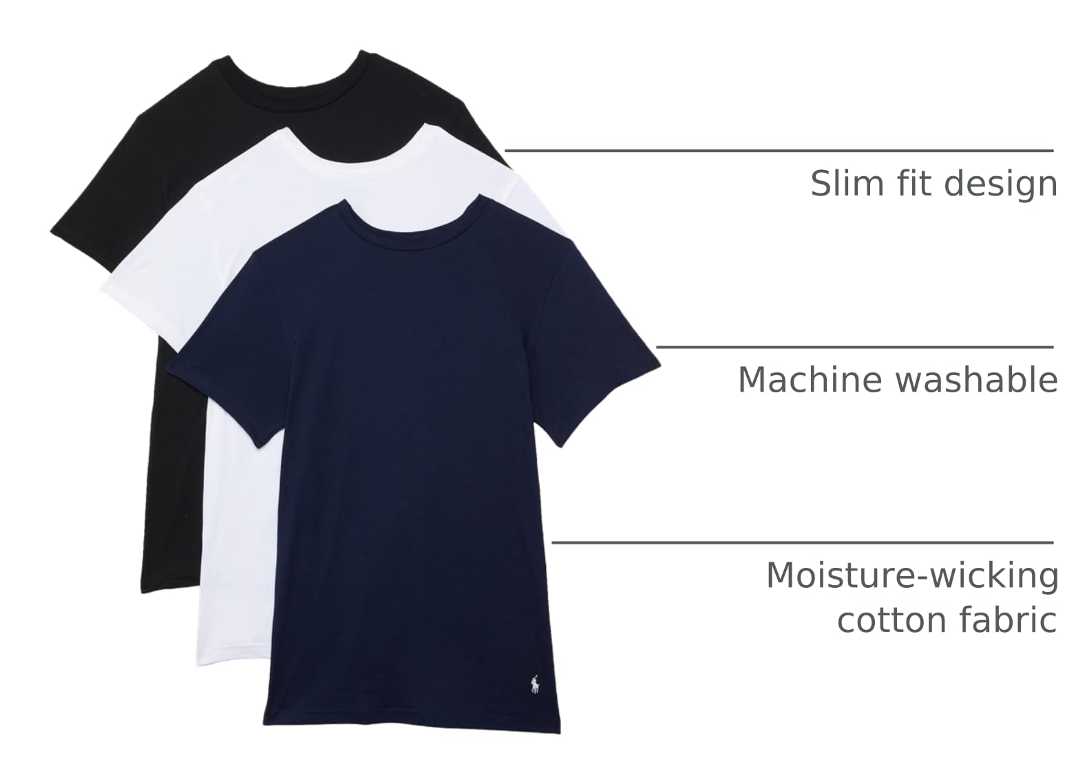 Polo Ralph Lauren Slim Fit with Wicking 3-Pack Crew Undershirts is a staple for your wardrobe essentials.