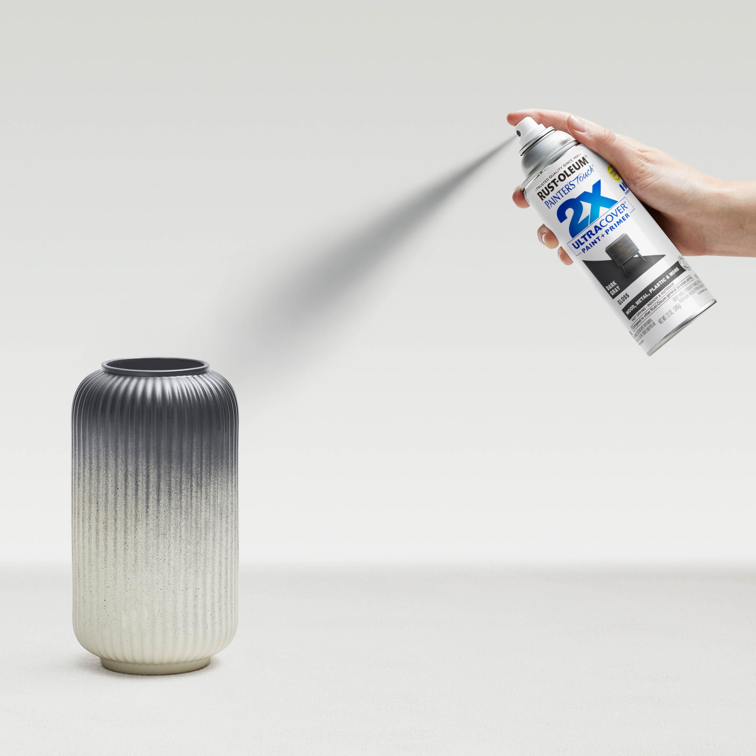 Product Description Painter's Touch 2X Ultra Cover spray paints offer superior coverage for faster project completion. They provide a tough, attractive finish on almost any interior/exterior surface. Designed with a comfort spray tip with a wider finger pad to reduce fatigue caused by continuous spraying. Convenient any angle spray applies easily leaving a rich, deep color that brings out the beauty in your project. From the Manufacturer Rust-Oleum 249115 12-Ounce Painter's Touch 2X Ultra Cover Spray Paint, Dark Gray Gloss Rust-Oleum 249115 12-Ounce Painter's Touch 2X Ultra Cover Spray Paint, Dark Gray Gloss Features: Spray paint 2X Ultra Cover series Advanced double cover technology provides the best formula for ultimate hiding power Allows projects to be completed faster and easier Fast dry formula Resists chipping and fading Ideal for use on baskets, cabinets, doors, wood or metal furniture, plaster, shutters, trim, unglazed ceramic and wicker Smooth, durable finish Any angle spray with comfort spray tip Gloss.